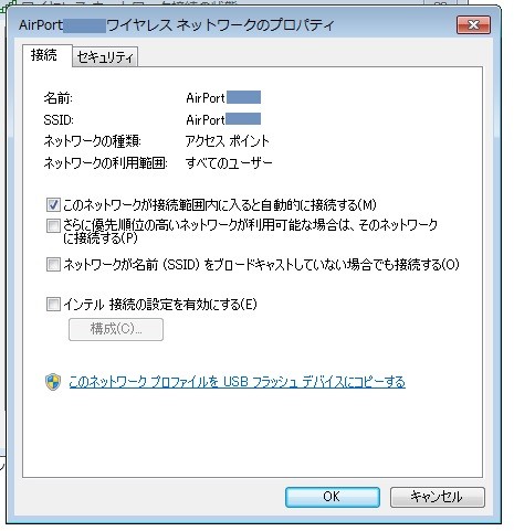 ついでに-関係ないと強く思っているが、絶対に関係ないとは(私の知識では)言い切れない-“ワイヤレスネットワークのプロパティ”で“インテル接続の設定を有効にする”を“無効”にした。