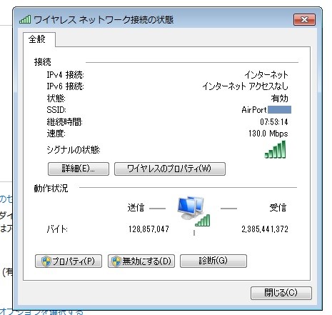 そのあとで“ワイヤレスネットワーク接続の状態”を見てみると、おぉっ!