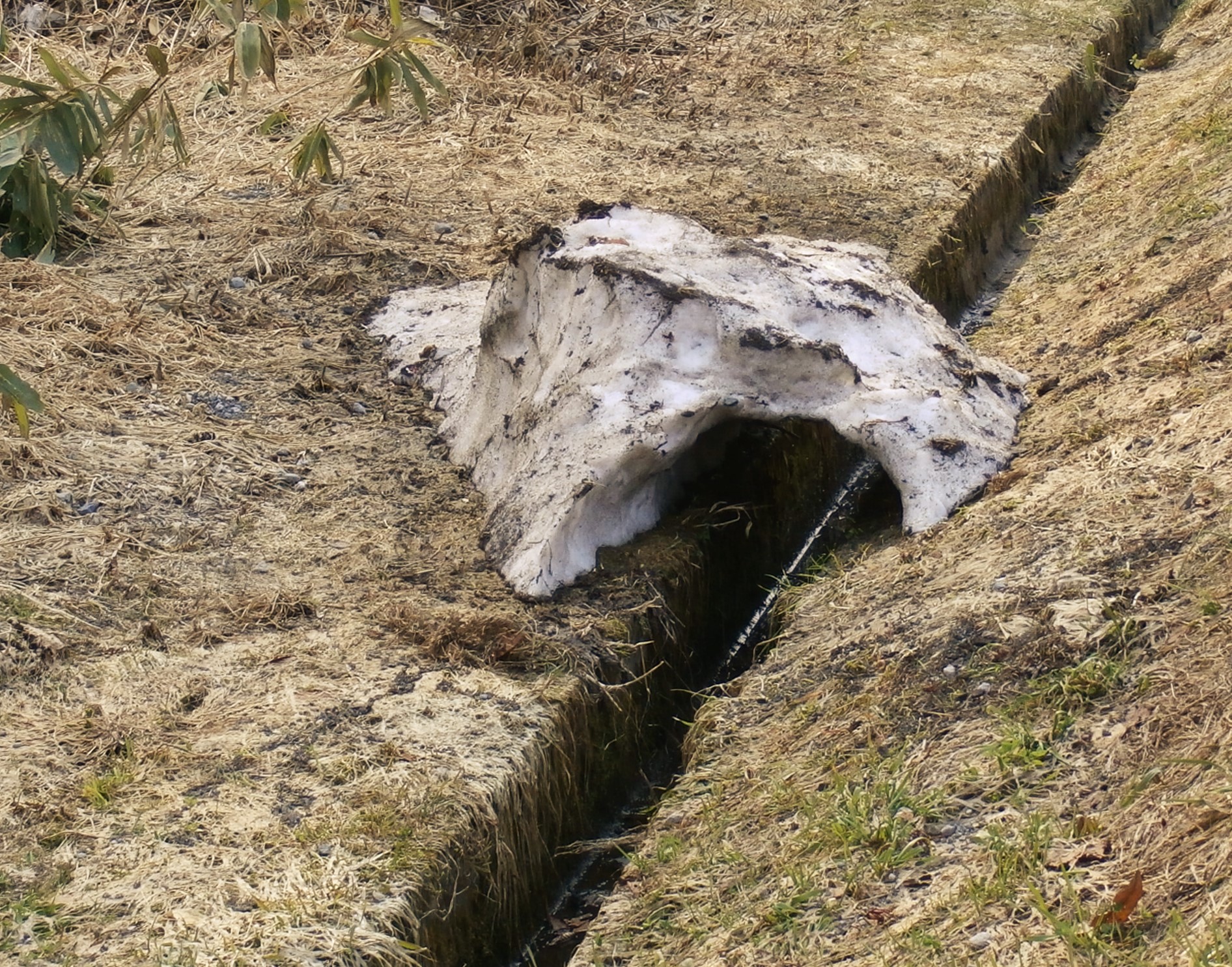 さらに、自然がつくる雪のトンネル(っていうのもオーバーだが)がまだ残っているのを見つけて、これまた撮影。