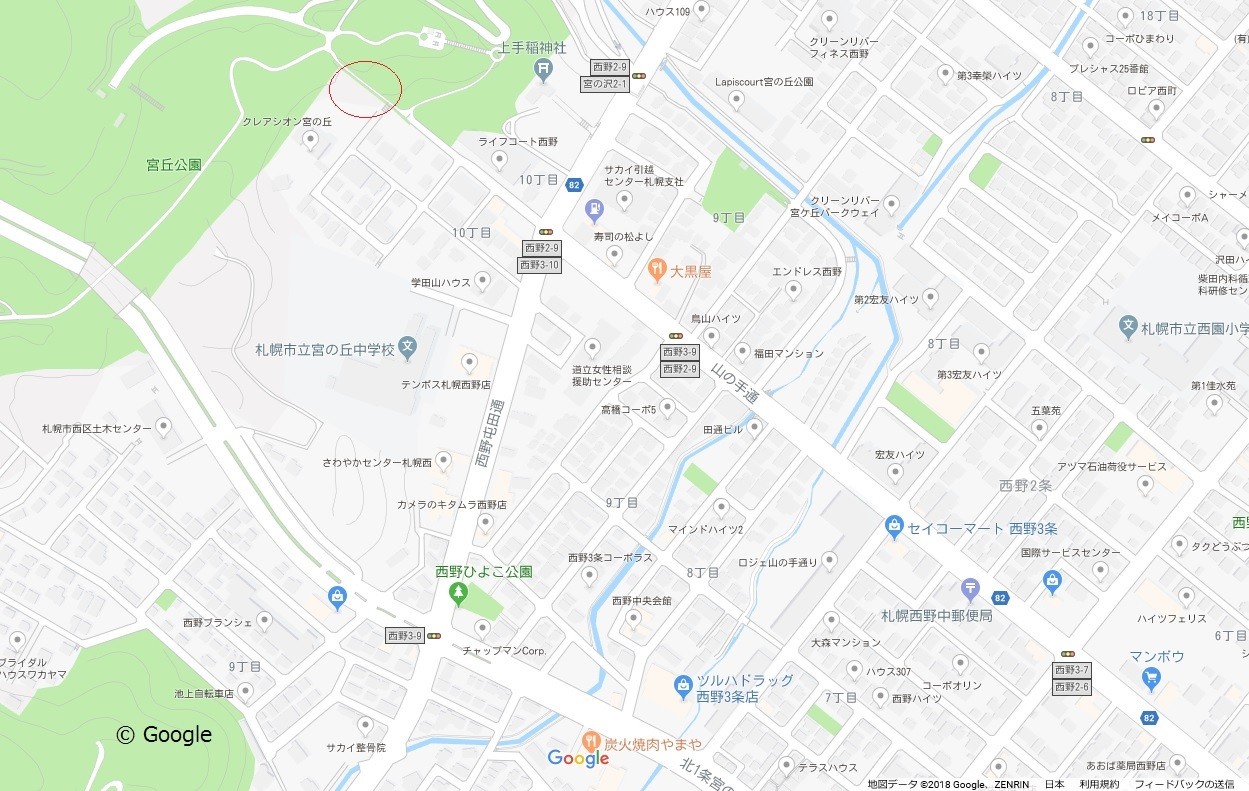 いまでは大きな老人施設やその向かいにそば屋(志ぶ家)があるが、当時は砂利道で、その先にある宮丘公園もいまのように整備されておらず、ただの空き地だった。