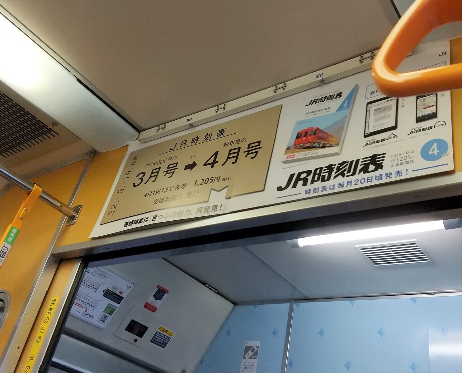 JR北海道の電車の中に、「JR時刻表」(全国版)の広告が吊ってあった。