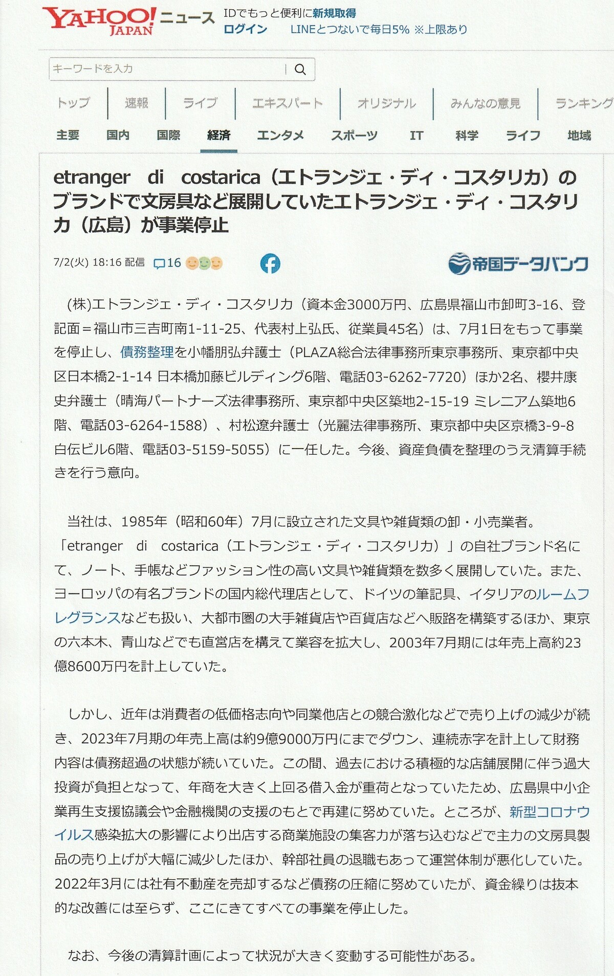 ぐひょおぉぉぉ~。なんと、今年の7月に会社がつぶれているではないか!