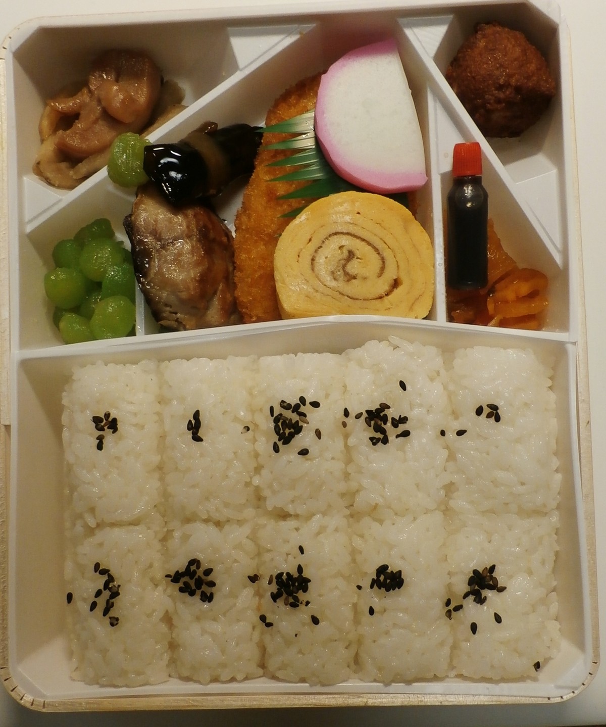 容器の中に入っているのはしょうゆではなくソースである。間違ってカマボコにかけないように気をつけた方がよい(カマボコはソースをかけて食べるのがいちばん、という人を除く)。