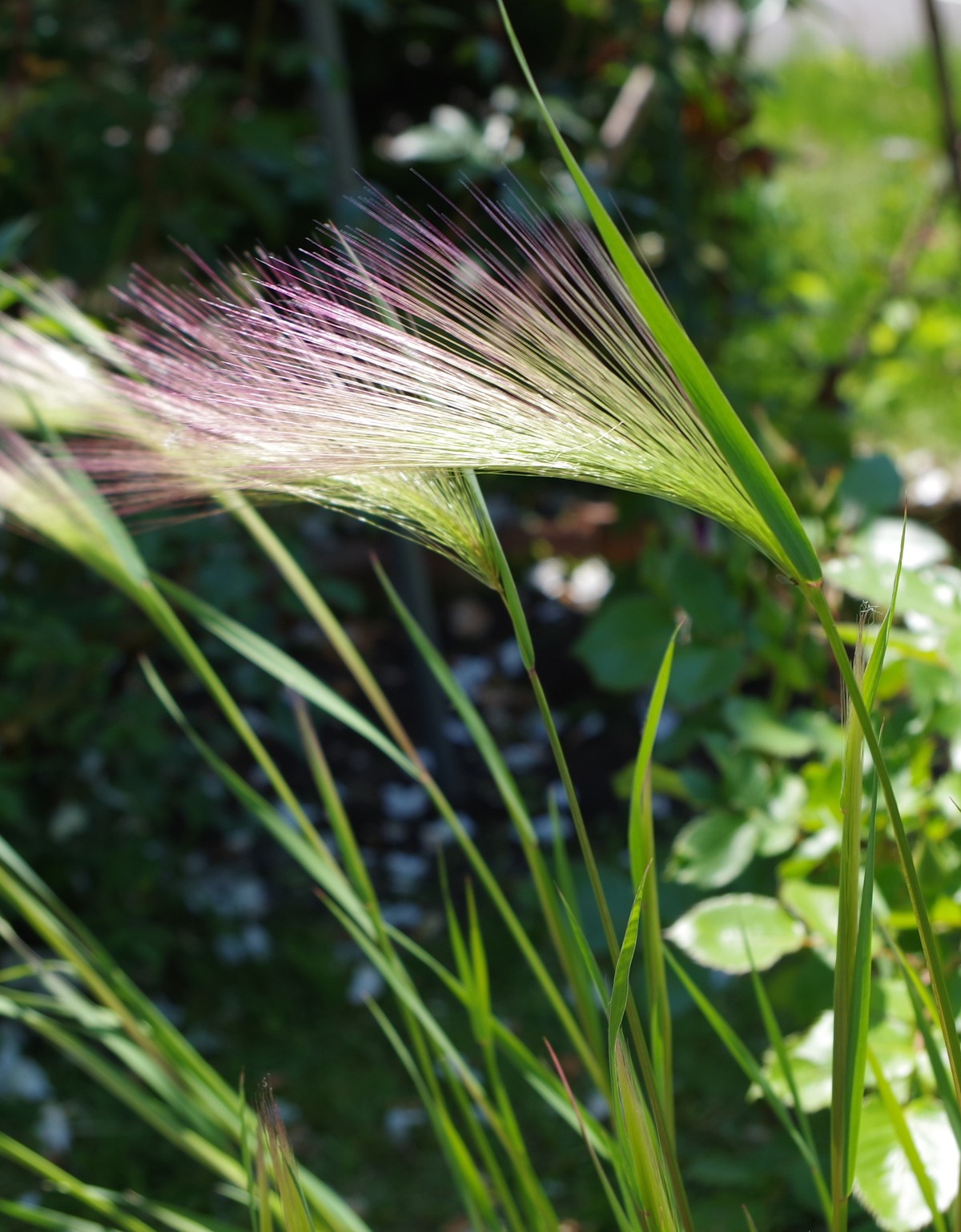 ところで、バラの横で風にゆらぐホルジューム・ジュバタムの穂を撮ったこの写真を先日のブログでも載せた。