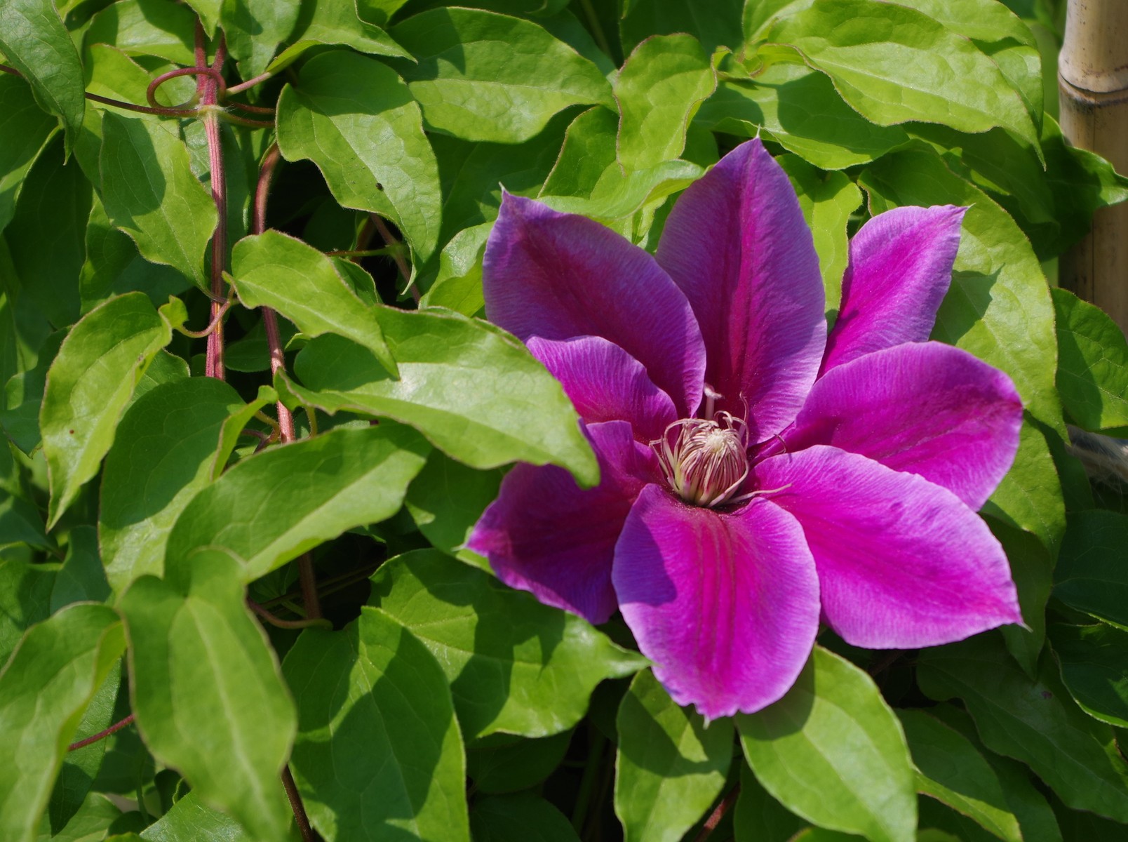 クレマチスのアロマティカの開花はすでに報告したが、“夜の女”のように派手に存在感をアピールするドクター・ラッペルも花を開いた。