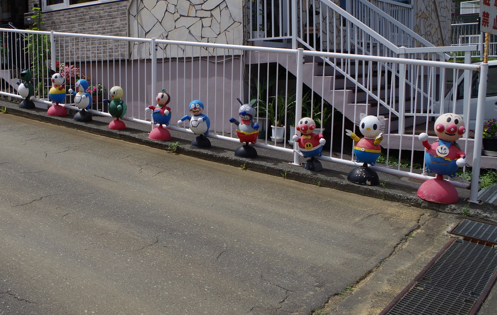 幼稚園の前には、モノマネ(偽物)王国・中国にありがちな人形が。