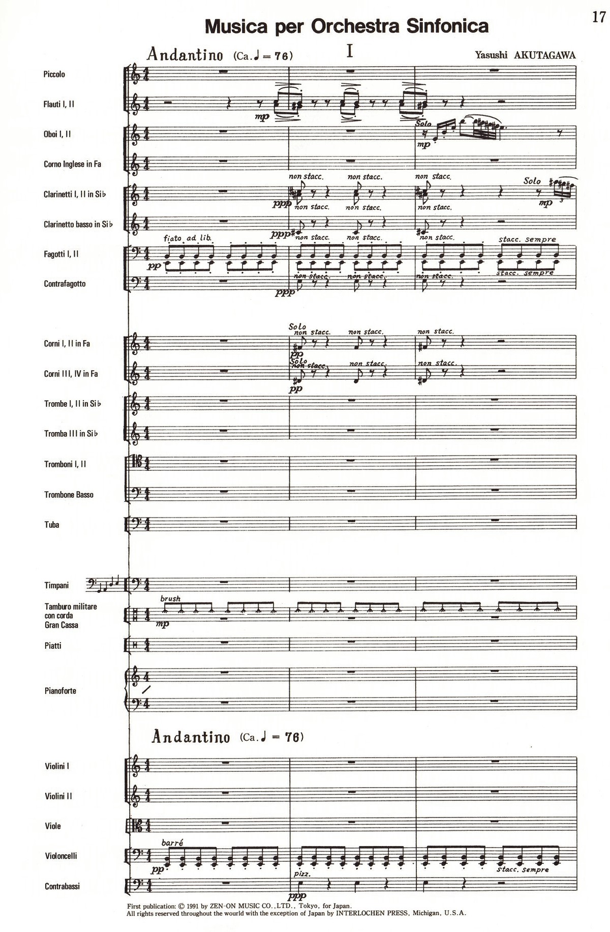 昨日の記事に出てきた芥川也寸志(Akutagawa,Yasushi 1925-89 東京)の「交響管弦楽のための音楽(Musica per Orchestra Sinfonica)」(1950)。