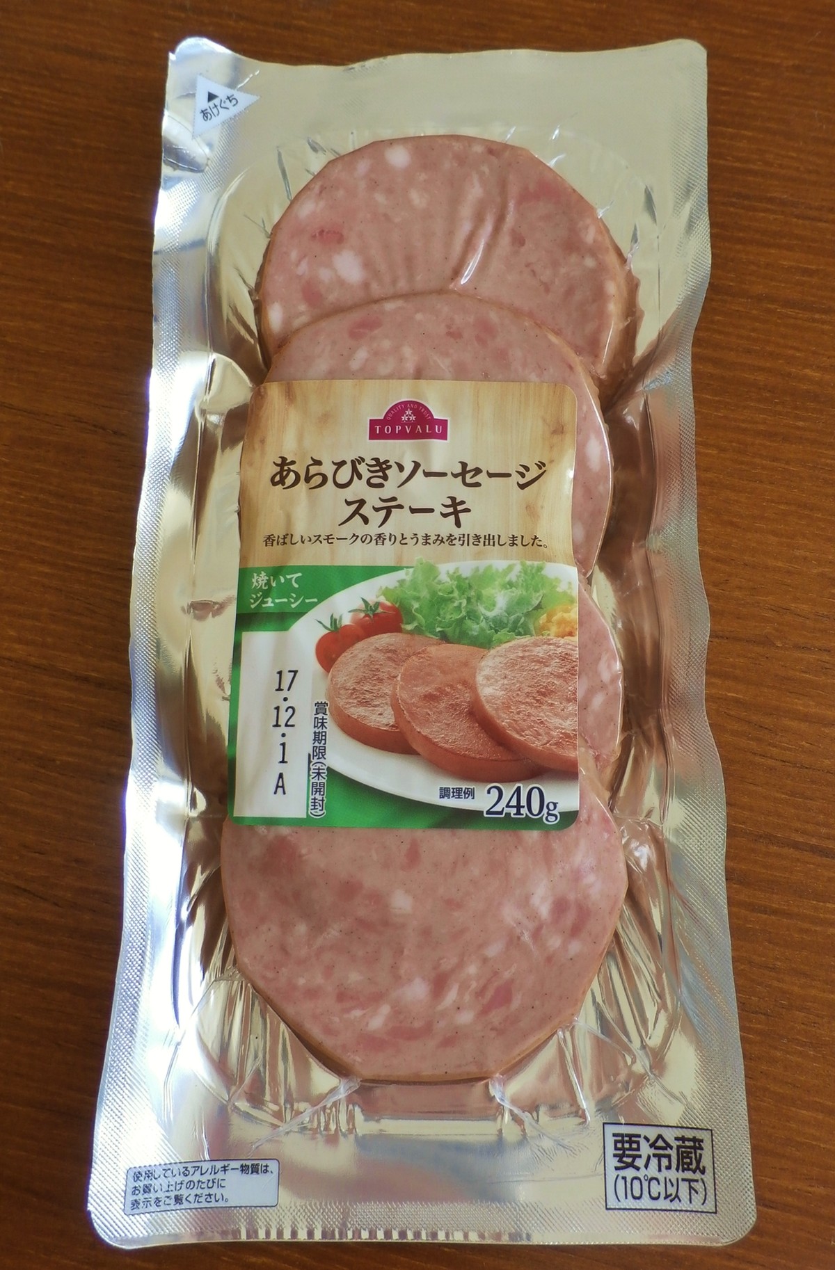 “あらびきソーセージステーキ”というのはトップバリュのプライベートブランド(PB)の商品名。