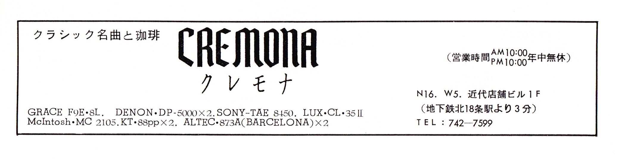 3つの名曲喫茶なかでいちばん好きだったのは『クレモナ』。