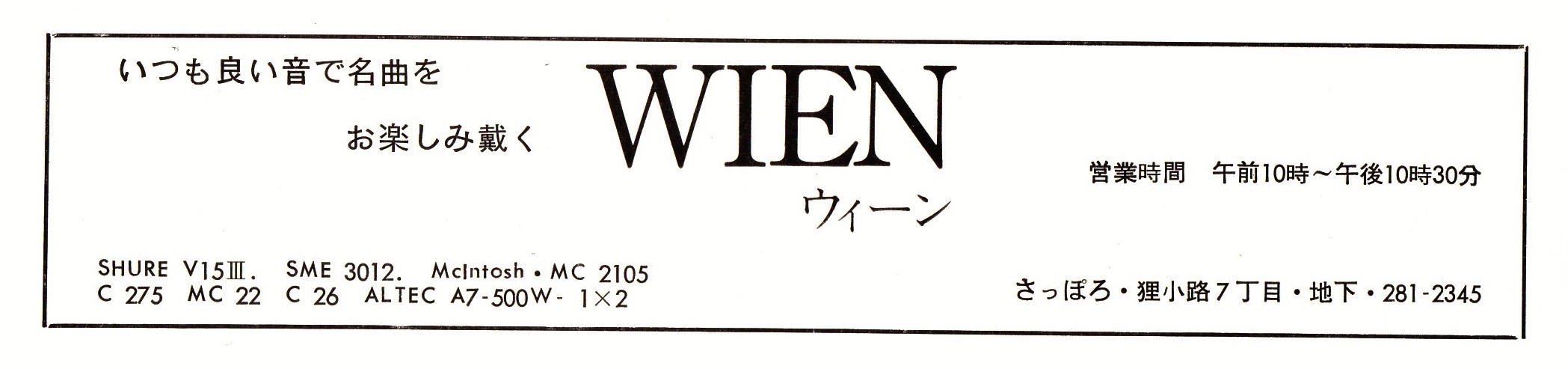 札幌市内で知りうる名曲喫茶のなかで、私が最後に行ってみたのが『ウィーン』。