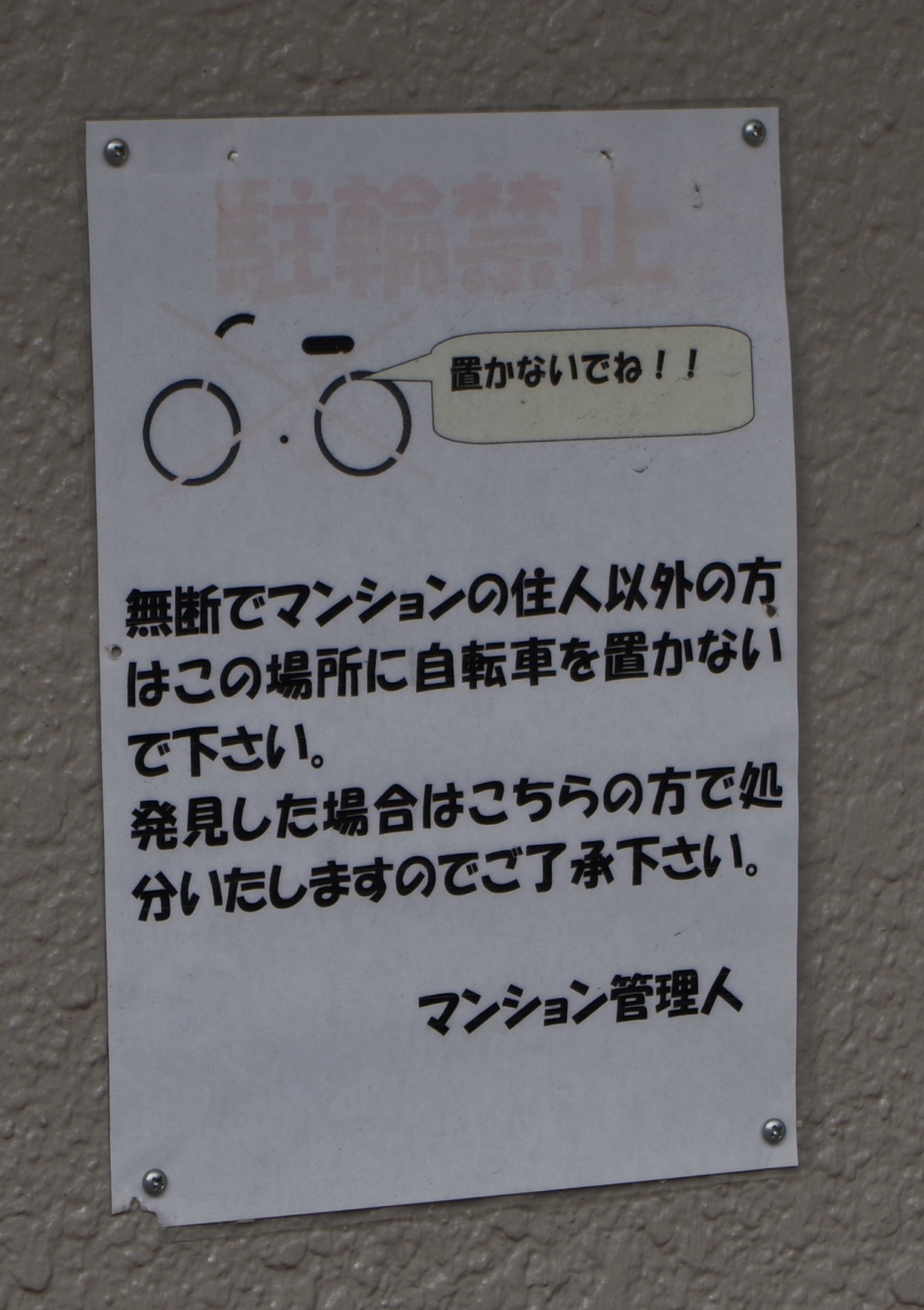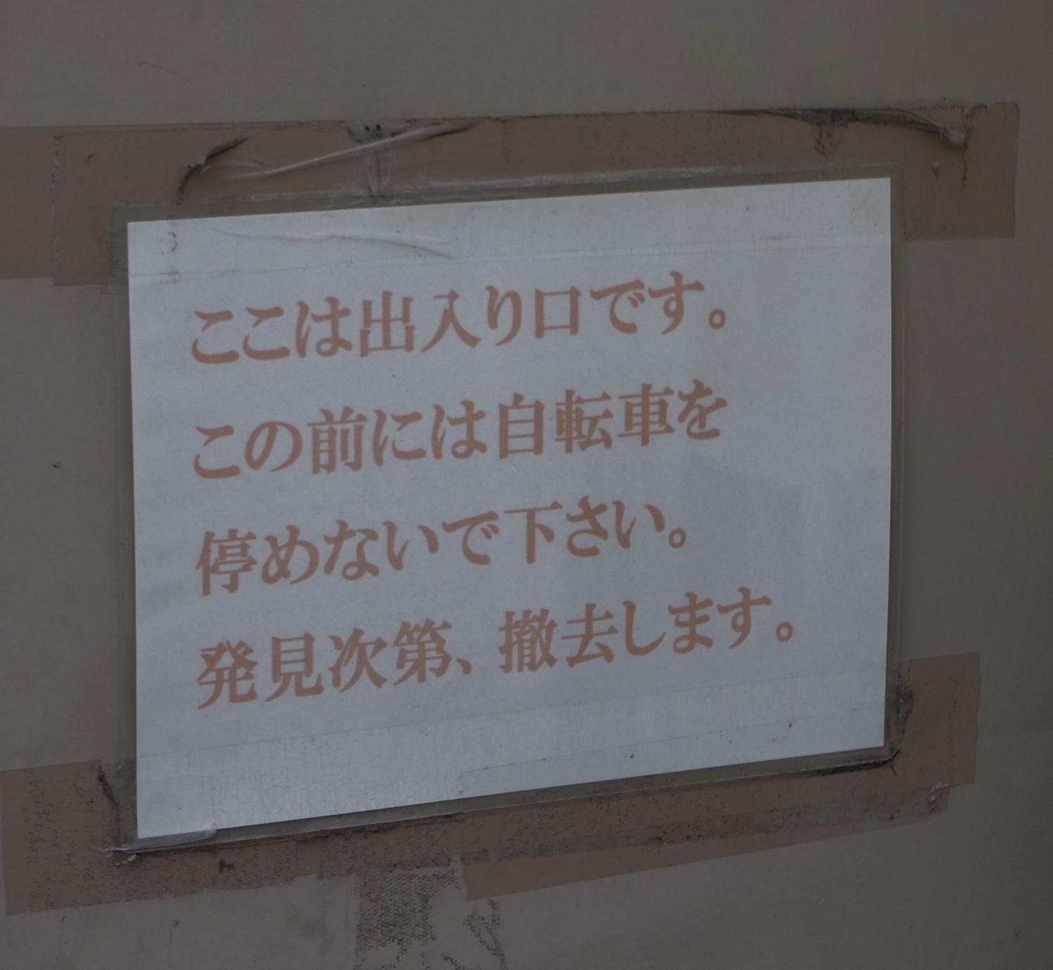 走るマナーも悪けりゃ、とめるマナーもなってないようで、こんな貼り紙のオンパレードだ。