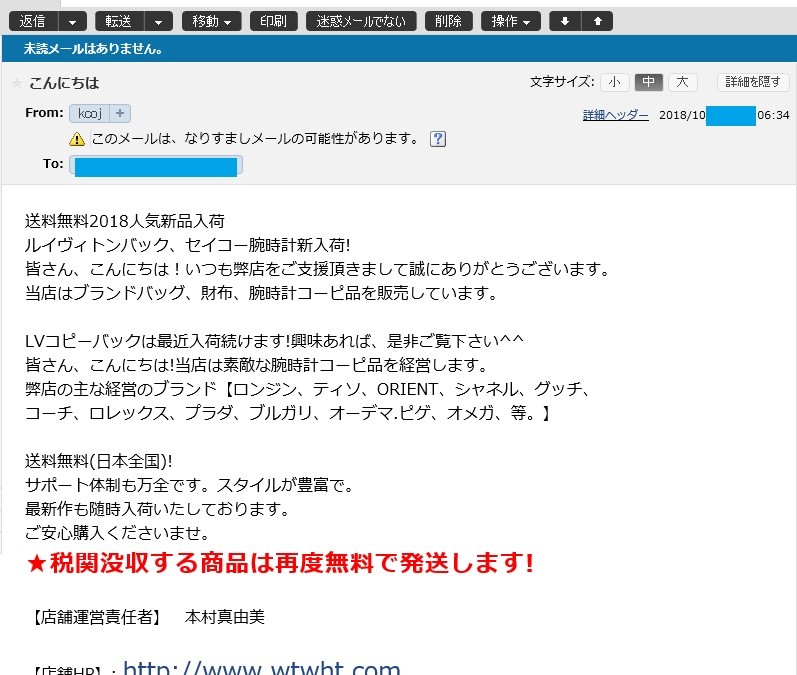 迷惑なメールだけど、こういうのがぱったり来なくなったらこれまた寂しいかなって思わせるものがある。