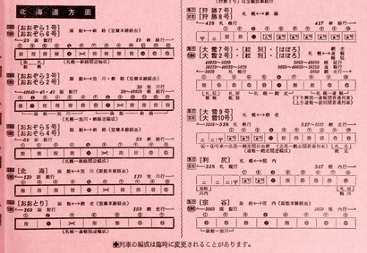 でも、江別駅はかつて稚内(利尻)や釧路(狩勝)、網走(大雪)に行く編成車両数が多い寝台急行列車の停車駅であった。ほうら、1978年10月号の交通公社の時刻表をみてちょーだい。