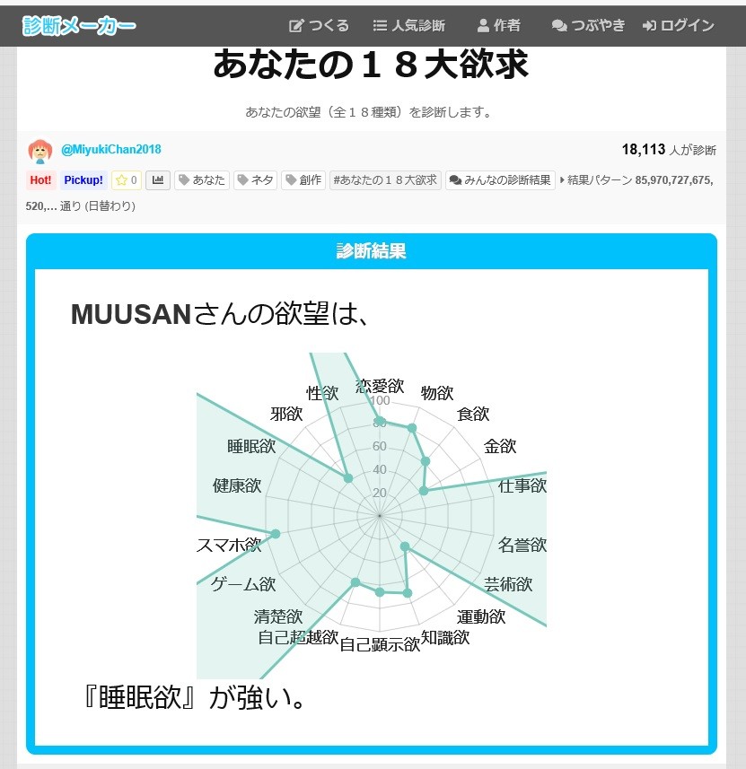 で、私の欲求についてだが、テストしたらこんなんだった。