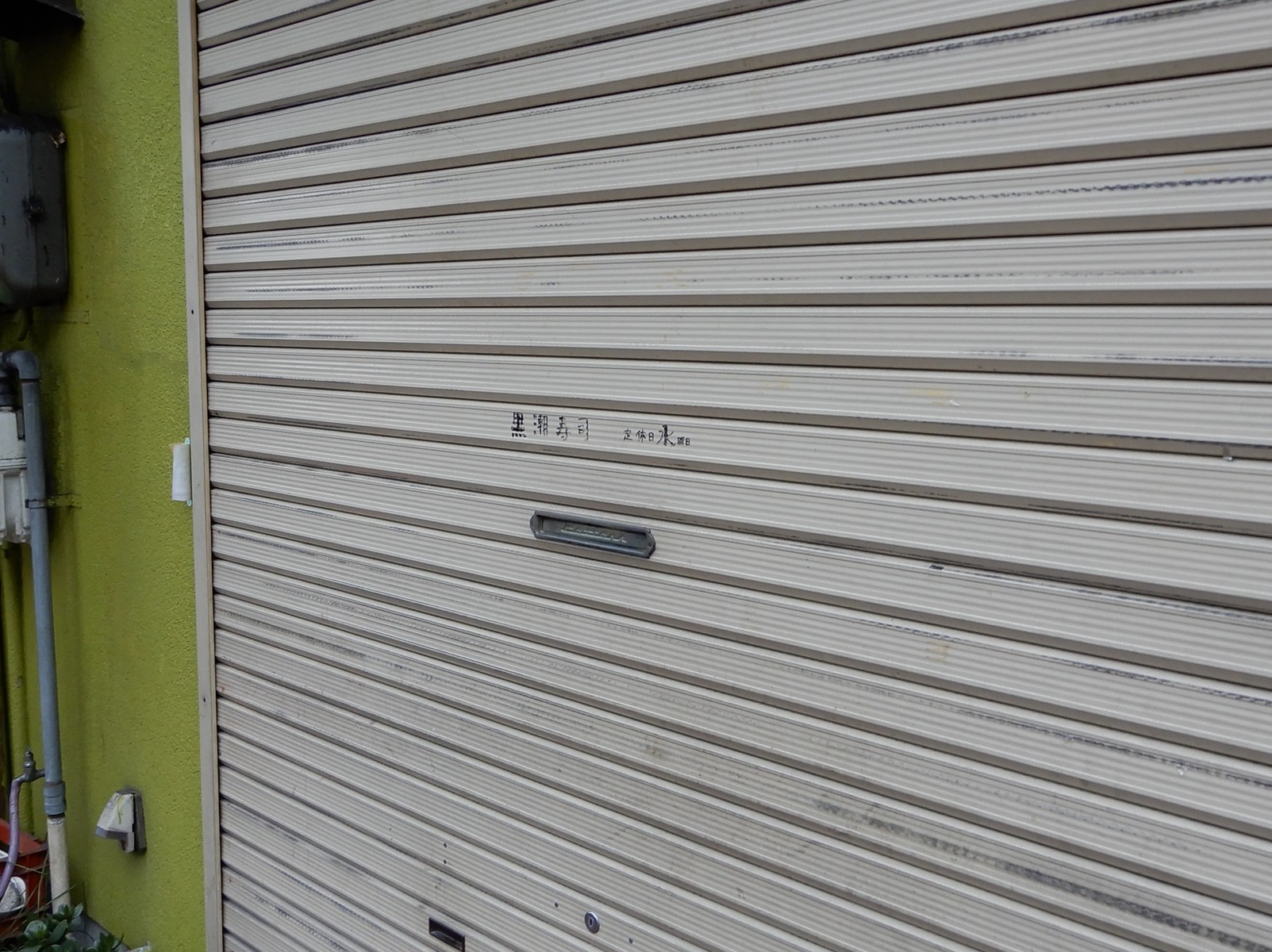 看板も何もない。が、よく見るとシャッターにとっても小さい字で店の名前と定休日が書いてあった。