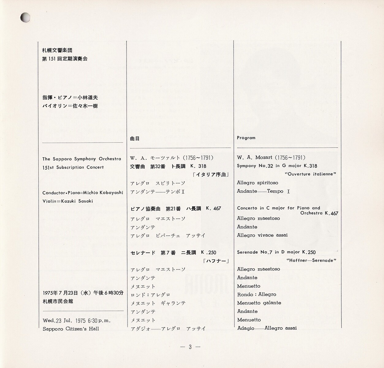 モーツァルト(Wolfgang Amadeus Mozart 1756-91 オーストリア)の交響曲第32番ト長調K.318(1779)。