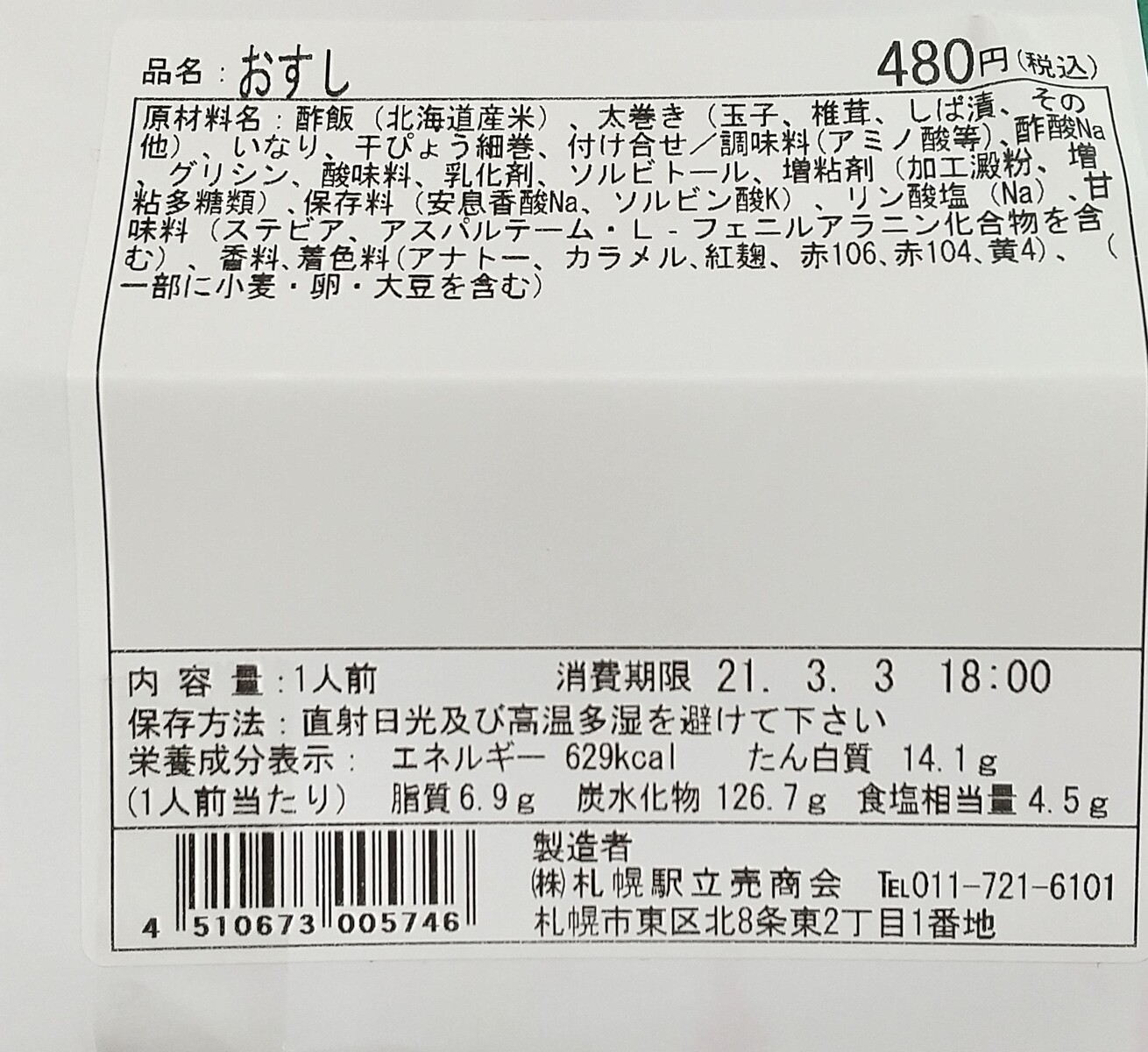そして、私がその日買ったのは「おすし」である。駅弁である。480円である。