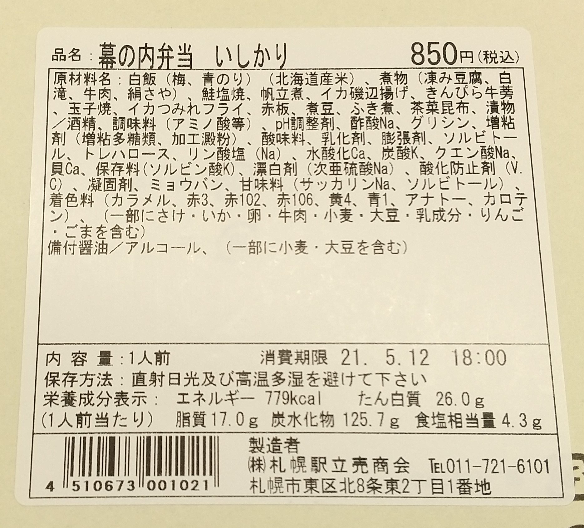 木曜日の昼は、4月21日以来となる駅弁の「幕の内 いしかり」を食べた。