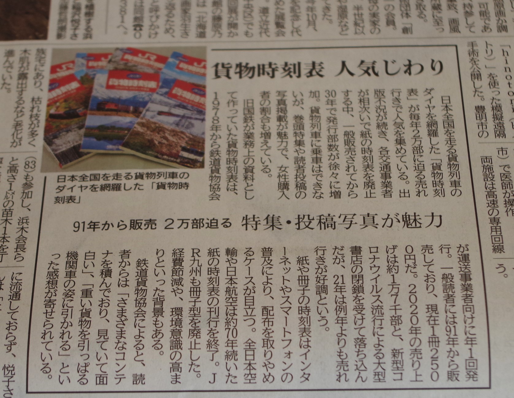 先週の土曜日-5月15日-の北海道新聞朝刊に、貨物時刻表の人気が高まっているという記事が載った。