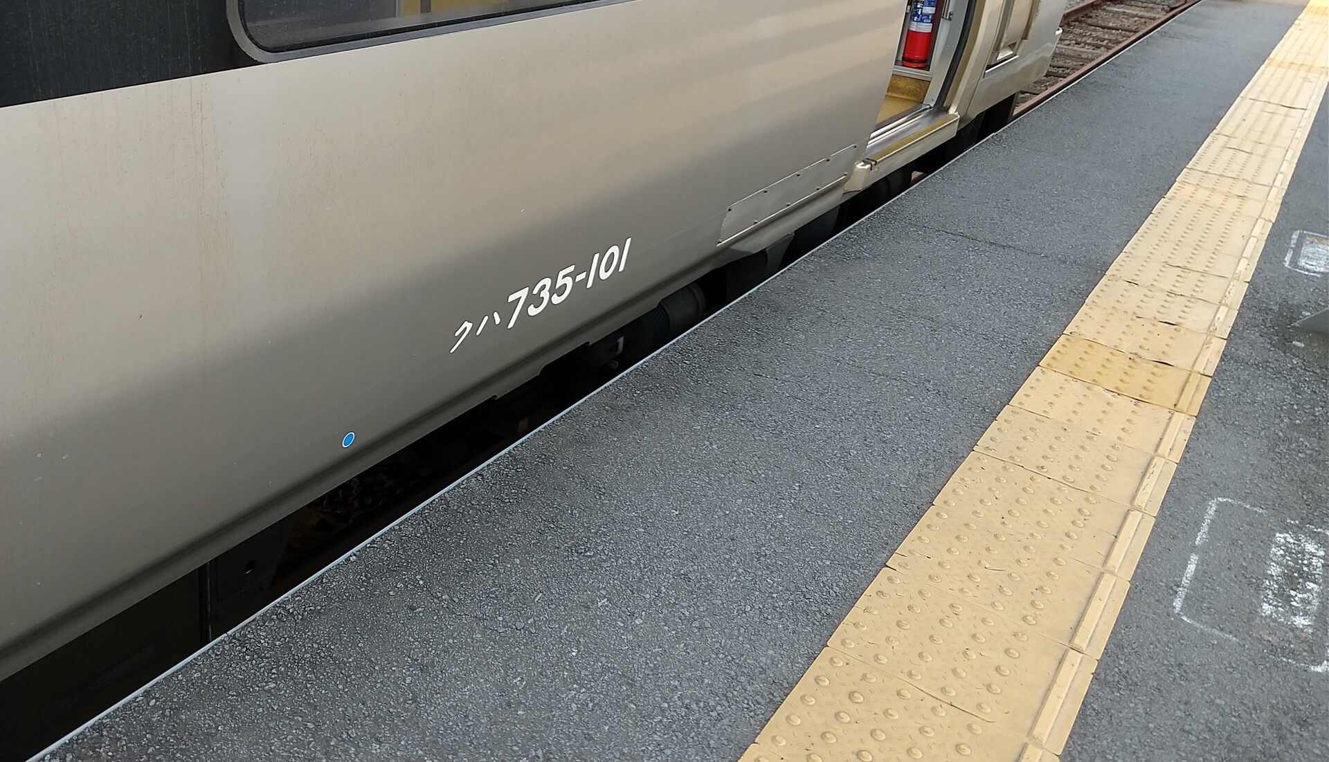 この日、私が乗る場所に来たのは希少車両の735系だった(721系3両+735系3両という編成)。