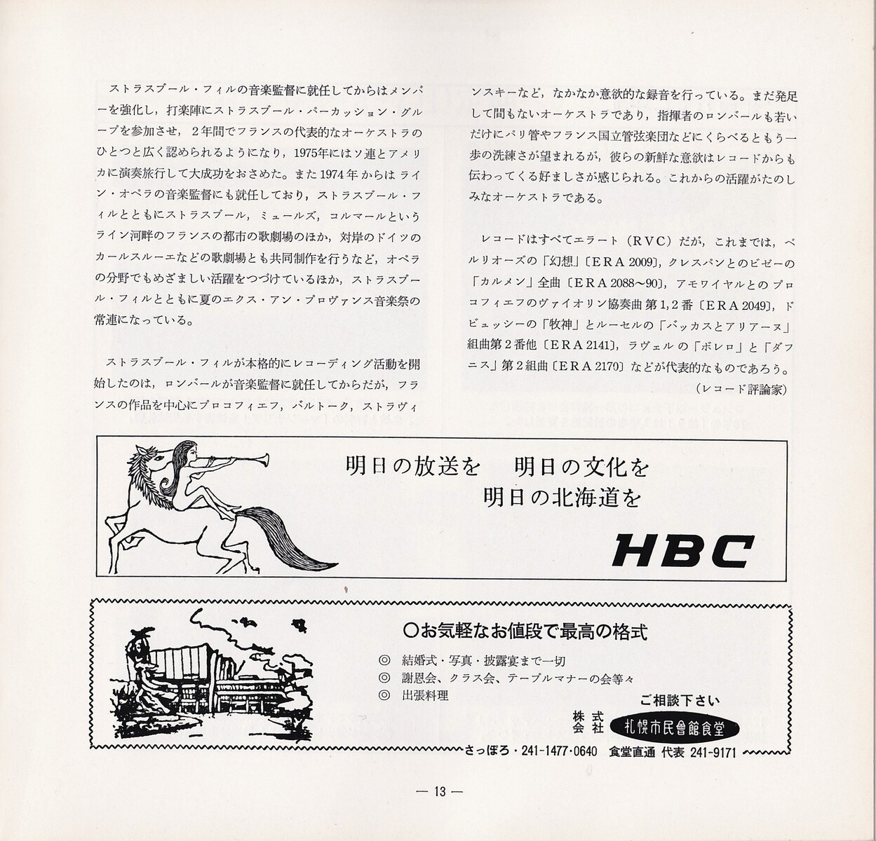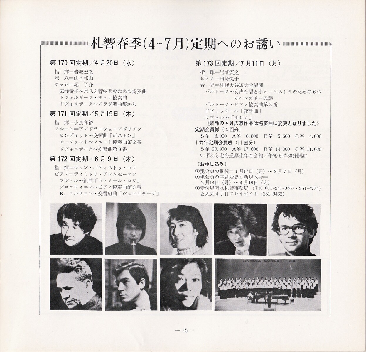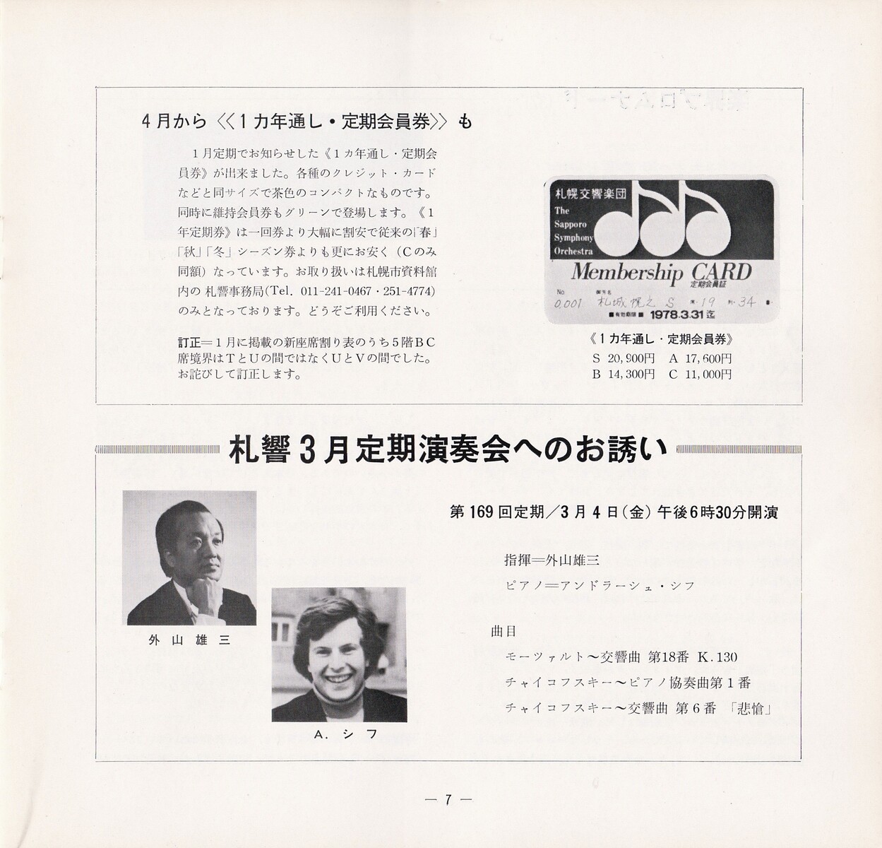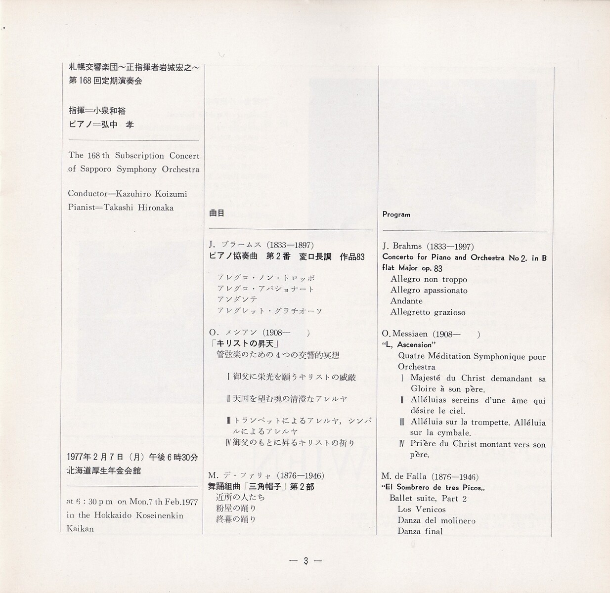 土曜マチネーだった第167回の翌月は、7日の開催。ってことは『さっぽろ雪まつり』の真っ最中ってことか。指揮者とピアニストのホテルをおさえるのたいへんだったんじゃない?