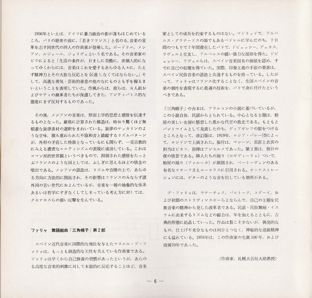 私のこの日のお目当ては「三角帽子」。この日のプログラムにもある(全曲ではなく)組曲の方は、私がクラシック音楽を聴くようになった年に早くも知り、ぜひとも生で聴いてみたいと思っていた曲。