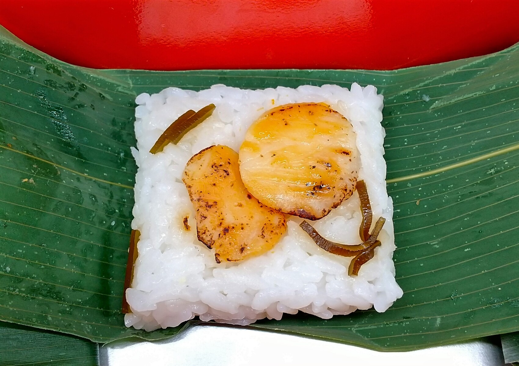 それにしても、手の込んだ包み方だ。笹を2枚、縦と横にクロスしてご飯を包んでいる。
