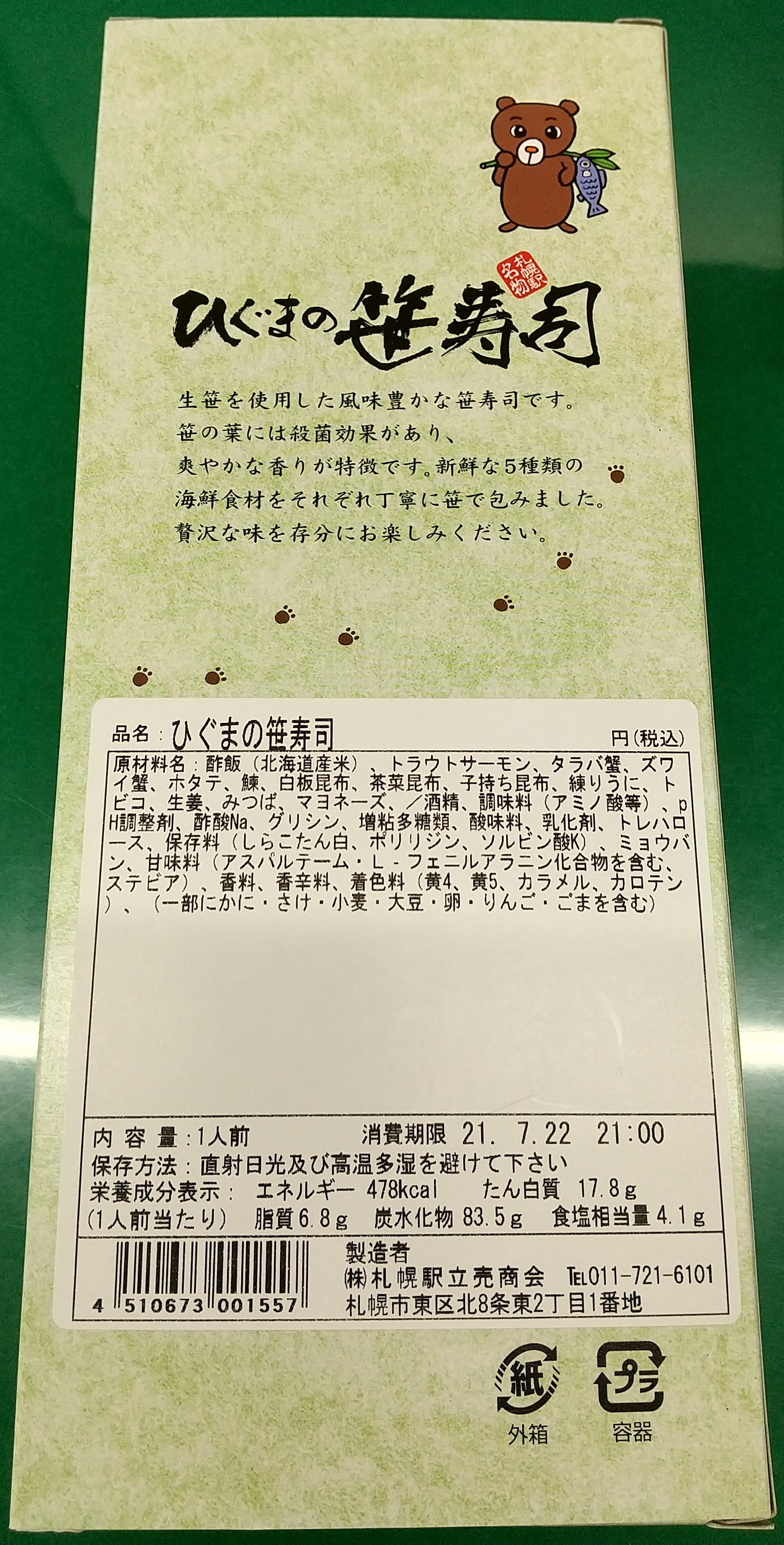 裏面にはかわいらしいヒグマのイラストが(これと同じ)。