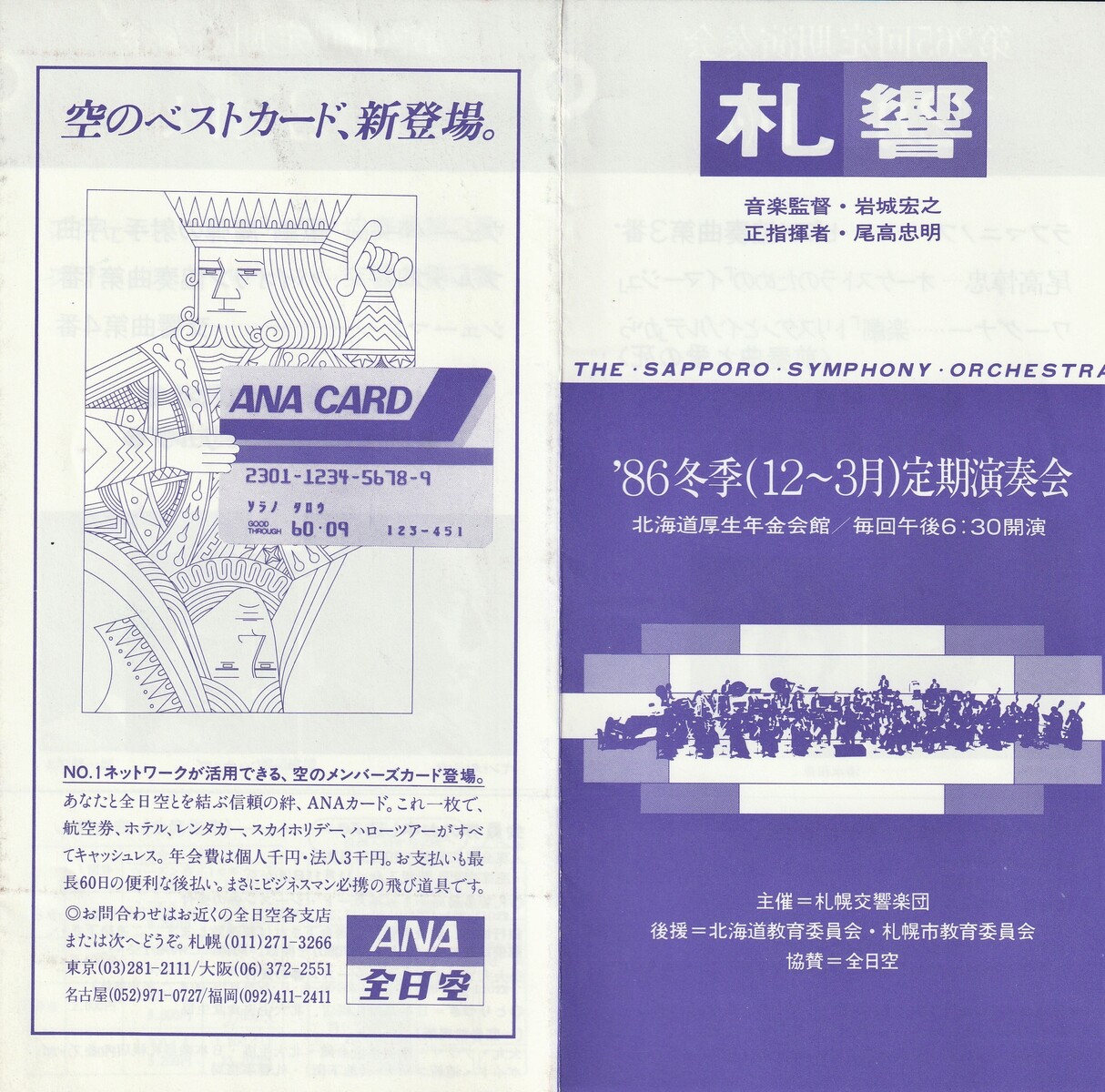 昨日の記事で ANA カードのことを書いたが、むかしの札響のシーズンごとのプログラムをお知らせするリーフレットの裏表紙を見ると、ANA カードが誕生したのは1985年のことだとわかった('86冬季シーズンは1985年12月~86年3月)。