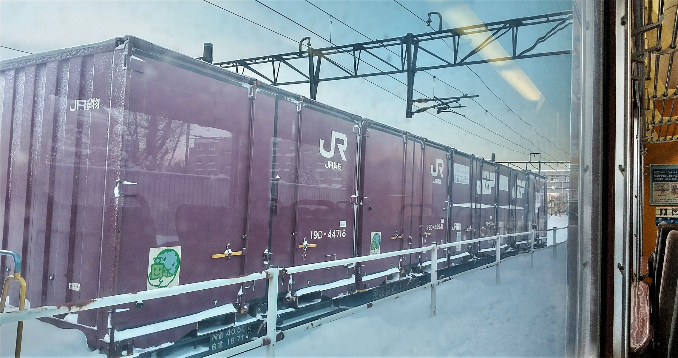 該当するコンテナ列車は札幌貨物ターミナル駅6:43発、北旭川行きの 1083 列車だそうだ。