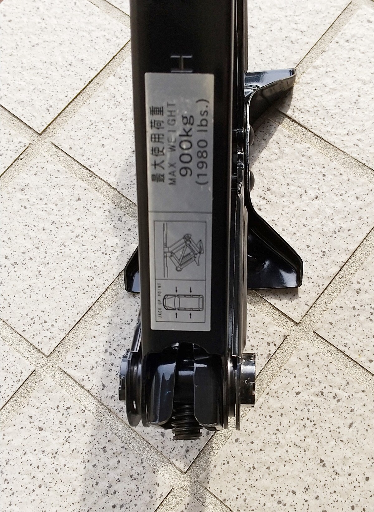 そのあと、トランクの中にあるこれまで使っていたジャッキをしげしげとあらためて見てみると、なんと耐荷重は900キログラム!1トンまで耐えられないものだった。