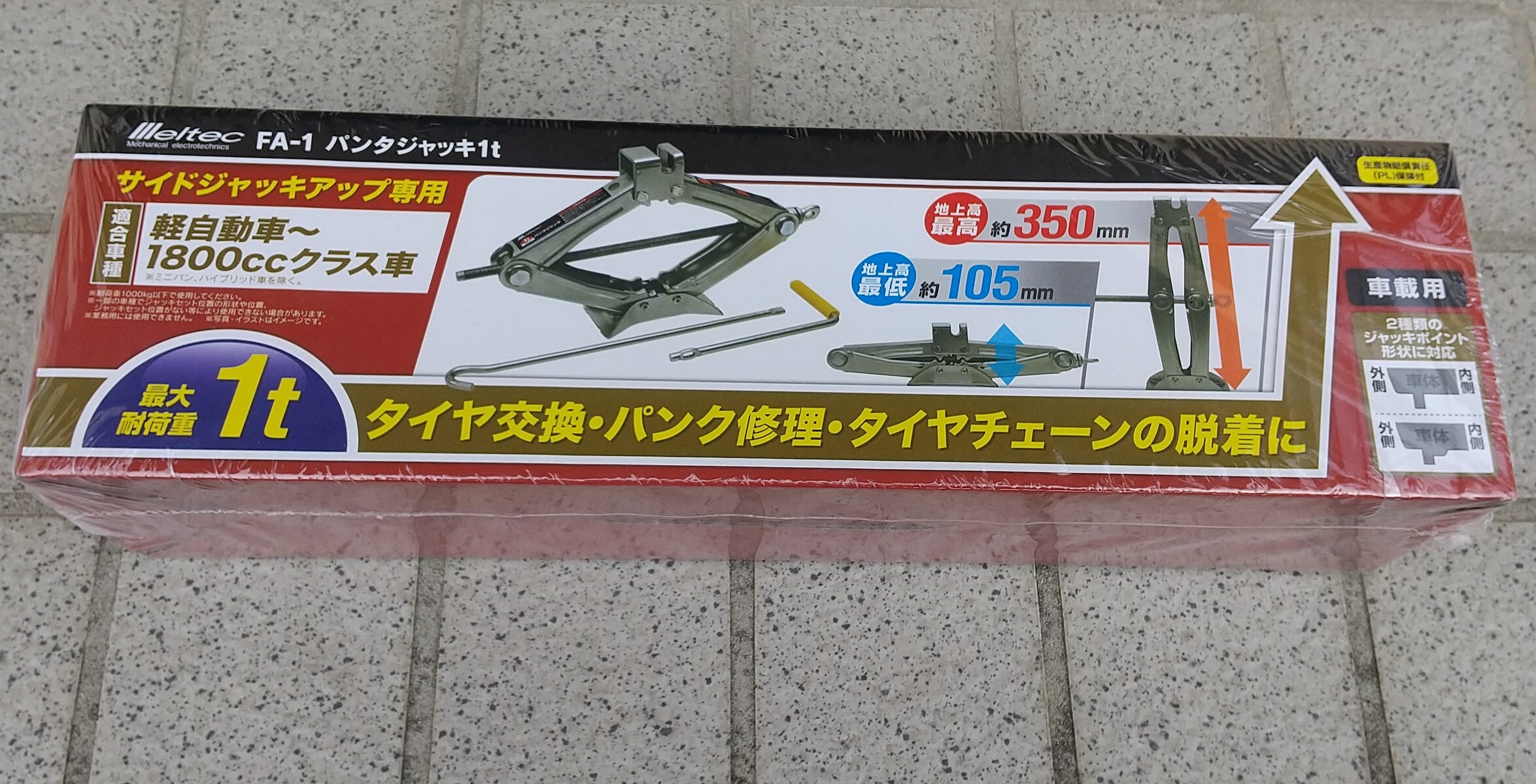 で、2,728円のシンプルなパンタジャッキを買ったのだった(もちろん常にトランクに積んでおく)。