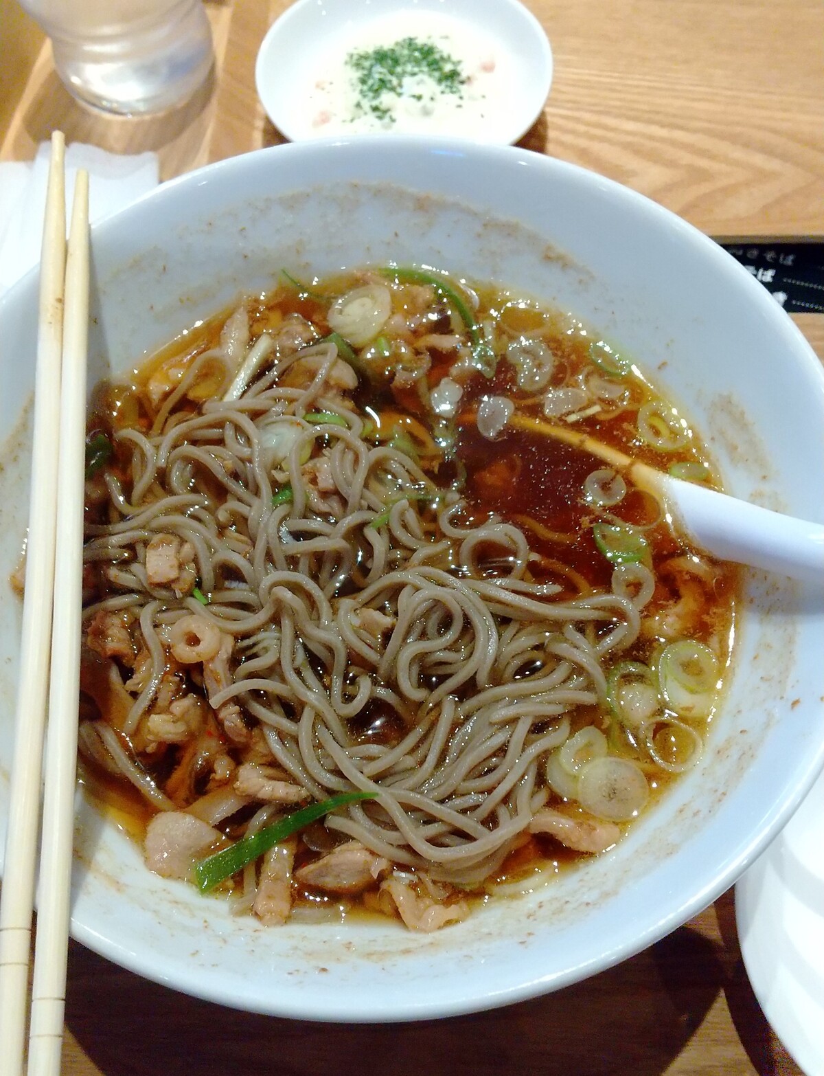 『親鳥』を使っているコリコリとしたかしわがおいしい。つゆも鶏の出汁がとってもでてておいしい。そば(新得そば)もおいしい。