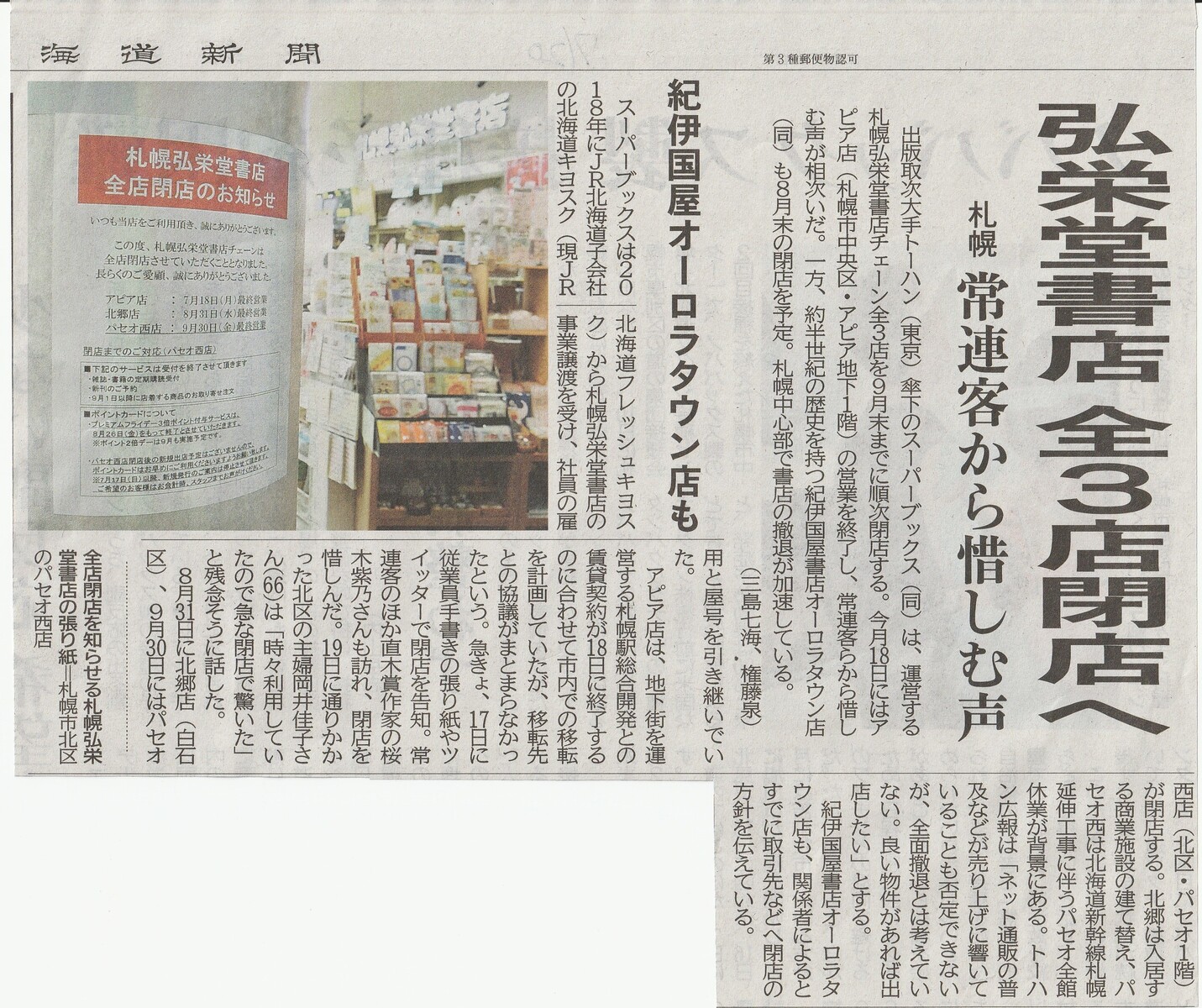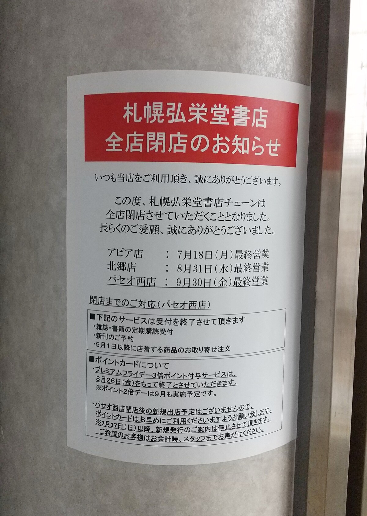 アピア店をはじめ、弘栄堂書店全3店が閉店という記事が北海道新聞に載ったのは、すでにアピア店が閉じられた20日のことだった。それほど唐突なことだったのだろう。
