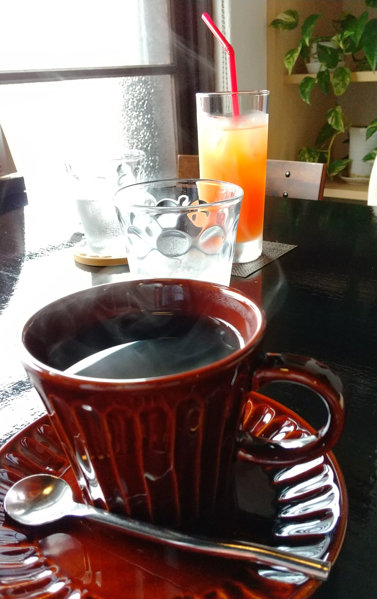 私はコーヒーを、妻はパンケーキセット(ドリンクはグレープフルーツジュースをチョイス)をオーダー。