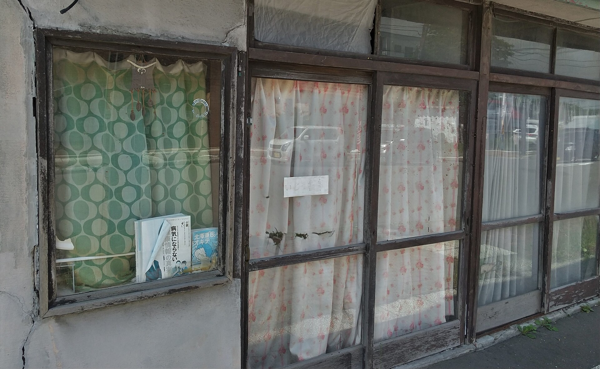 もう一度北洋銀行方向に戻ると、ちょうど銀行の向かいには、これまた閉店した本屋が。