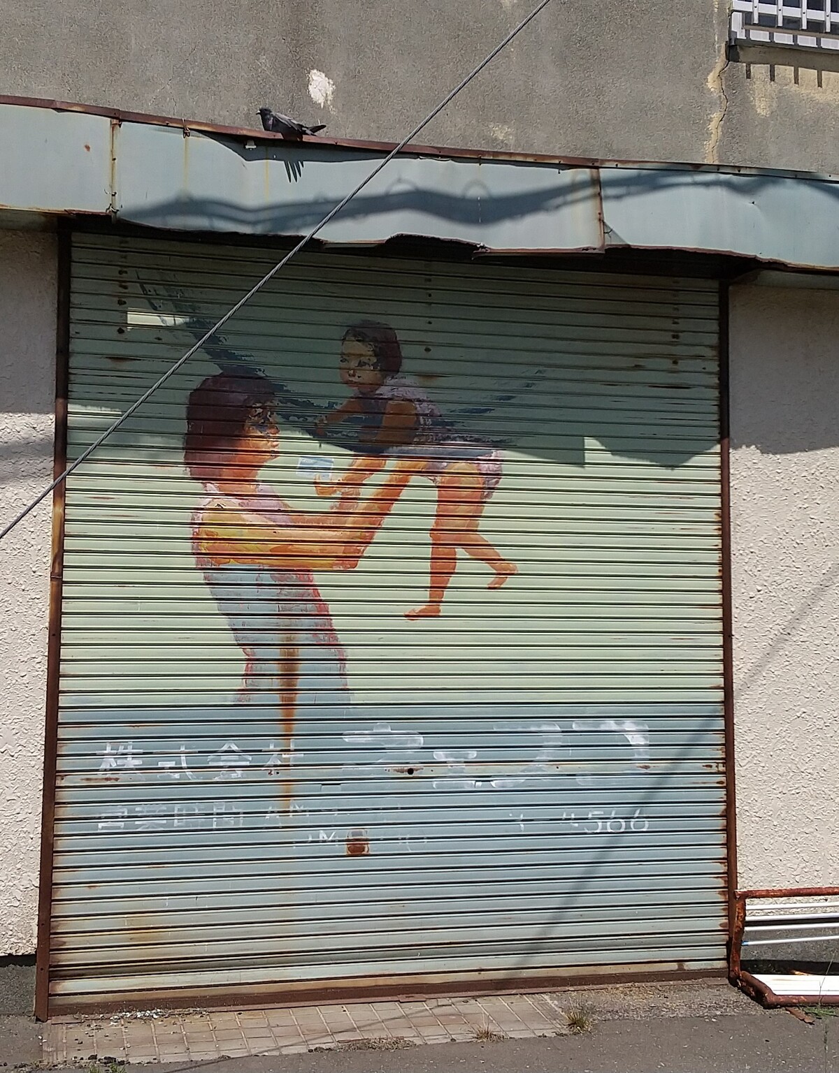このシャッターに天使が描かれている店は、何の店だったのだろう?