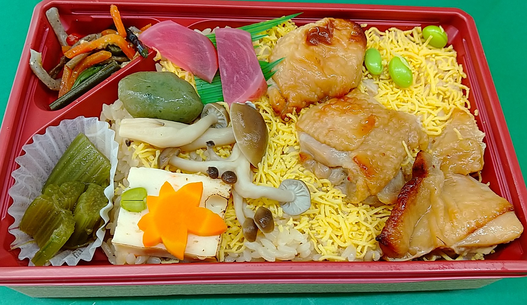 弁当の容器は、間違いなく一括仕入れだと思います。