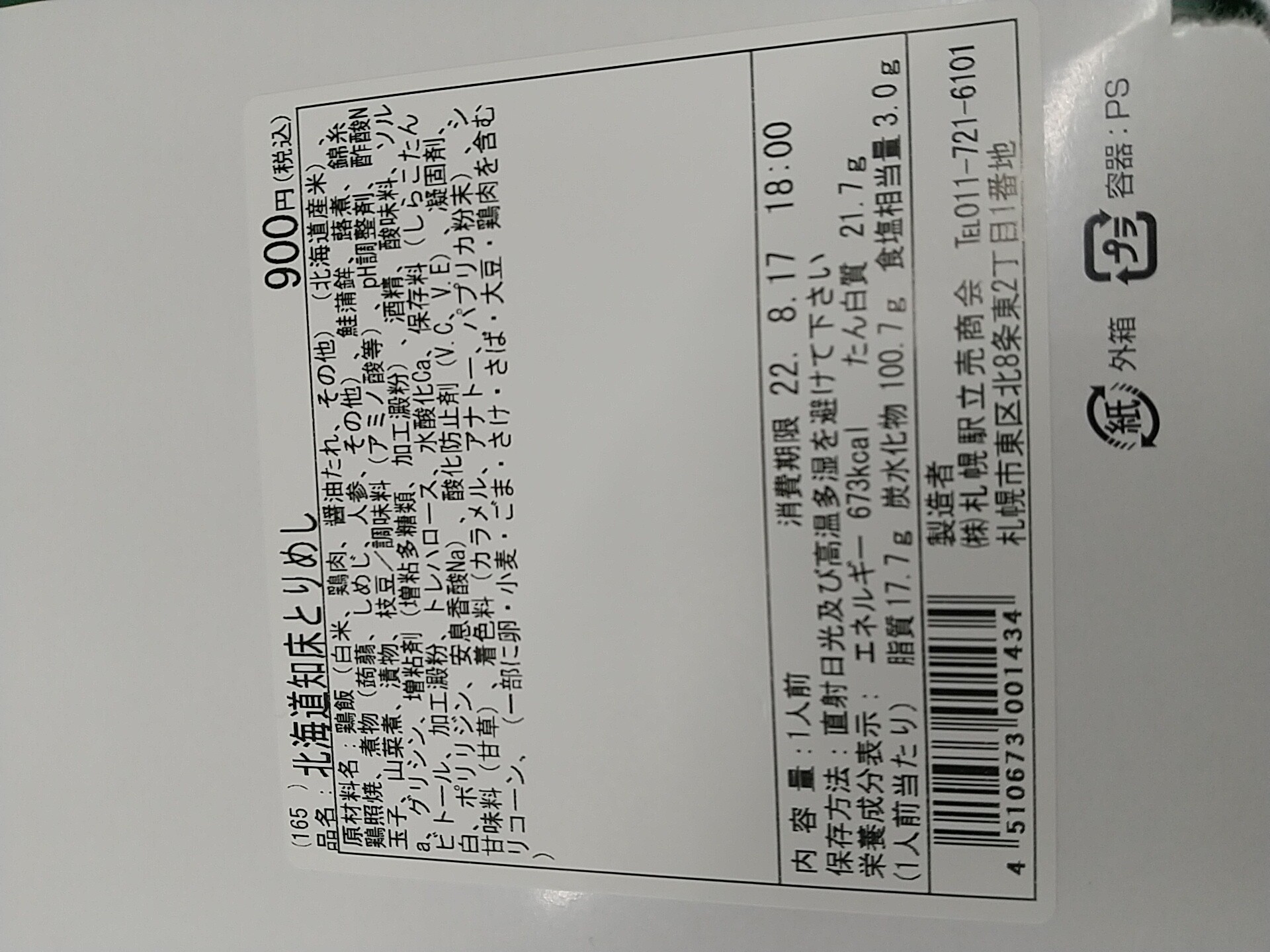 さて、水曜日は安定したおいしさ、そして今でも900円と価格据え置きでがんばっている札幌駅立売商会(弁菜亭)の駅弁「知床とりめし」を食べた(紙のスリーブを外したあとは、『横置き』にして食べた)。