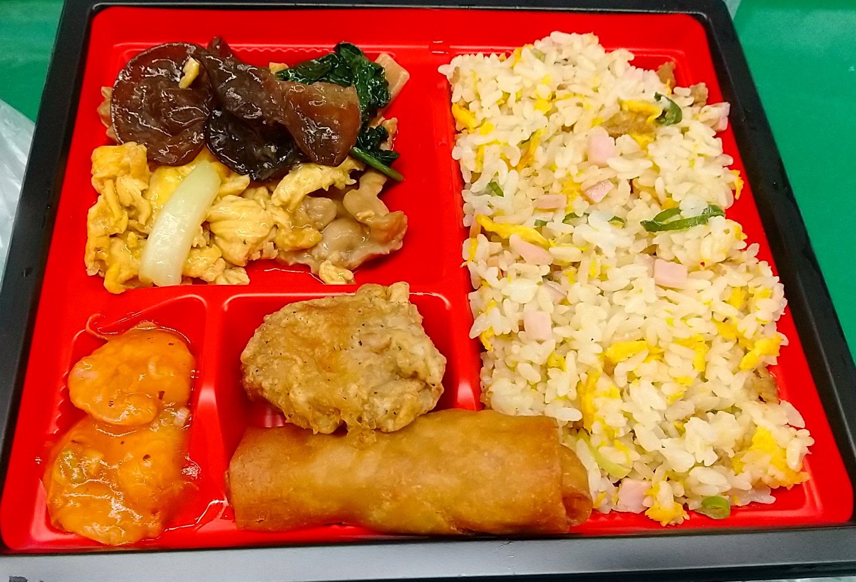 炒飯にメインのおかず1品とザンギと春巻という点では共通している。