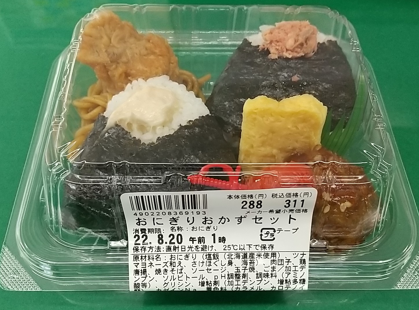 金曜日は、「知床とりめし」のほぼ3分の1の価格(311円)の、日糧の「おにぎりおかずセット」にした。というのも、この日は朝からあまり食欲がなかったからだ。昼になったときには「やっぱ足りないかな」と後悔したが……