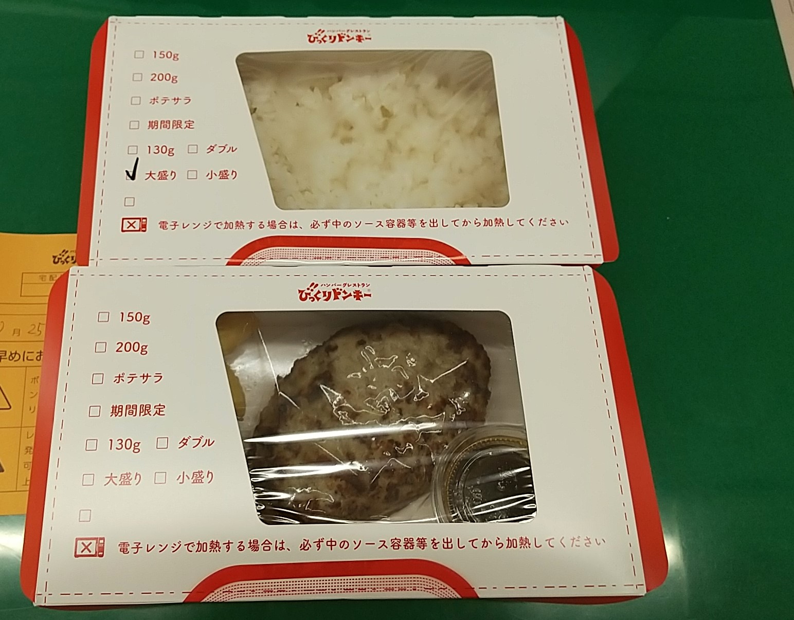 150グラムのレギュラーハンバーグとライス(大)のお代は950円。それに1円のレジ袋もお買い上げして、会社に戻った。