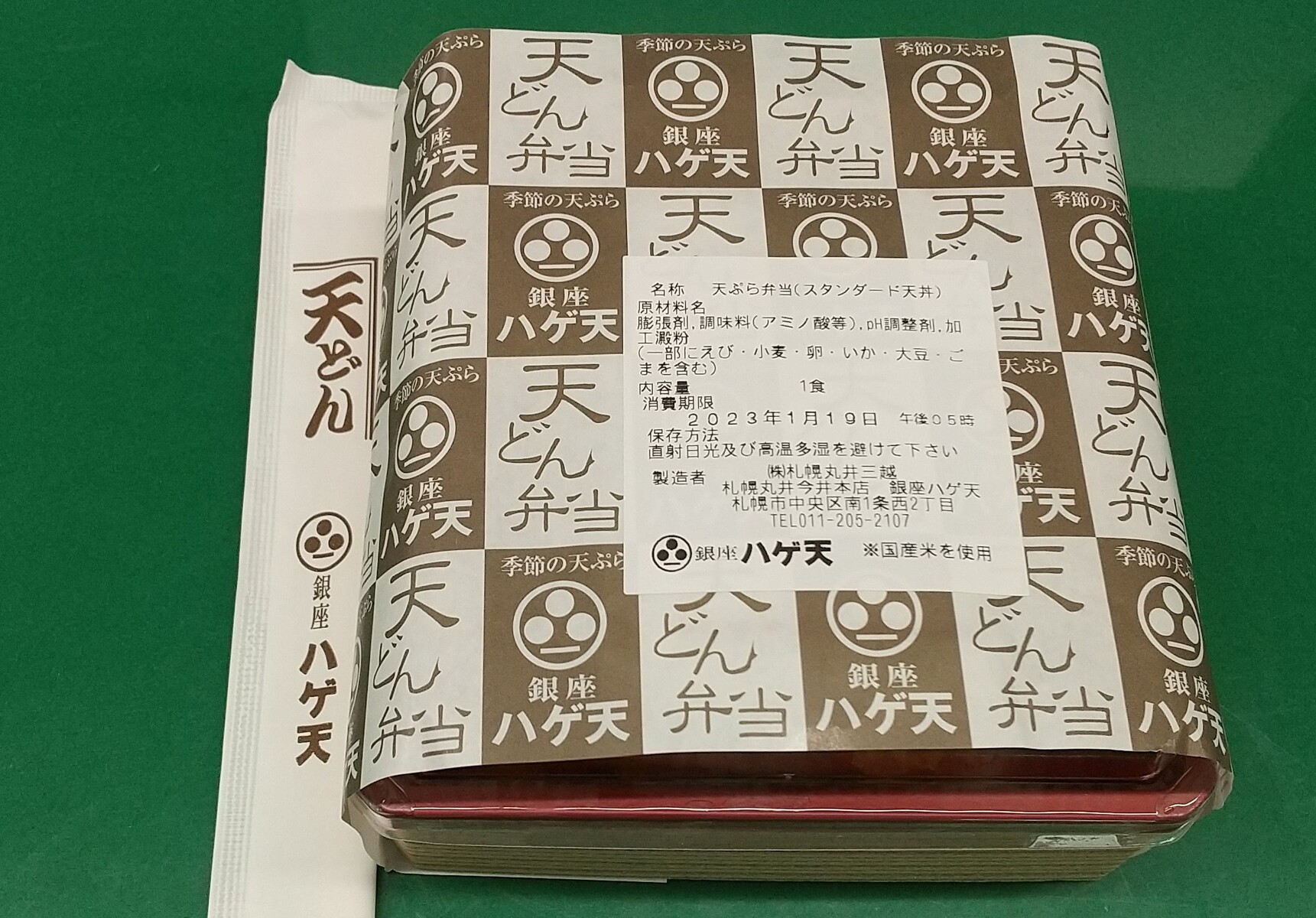 そんななか、お値段も手ごろな「銀座ハゲ天」の天丼弁当を買うことに、私は決めた。