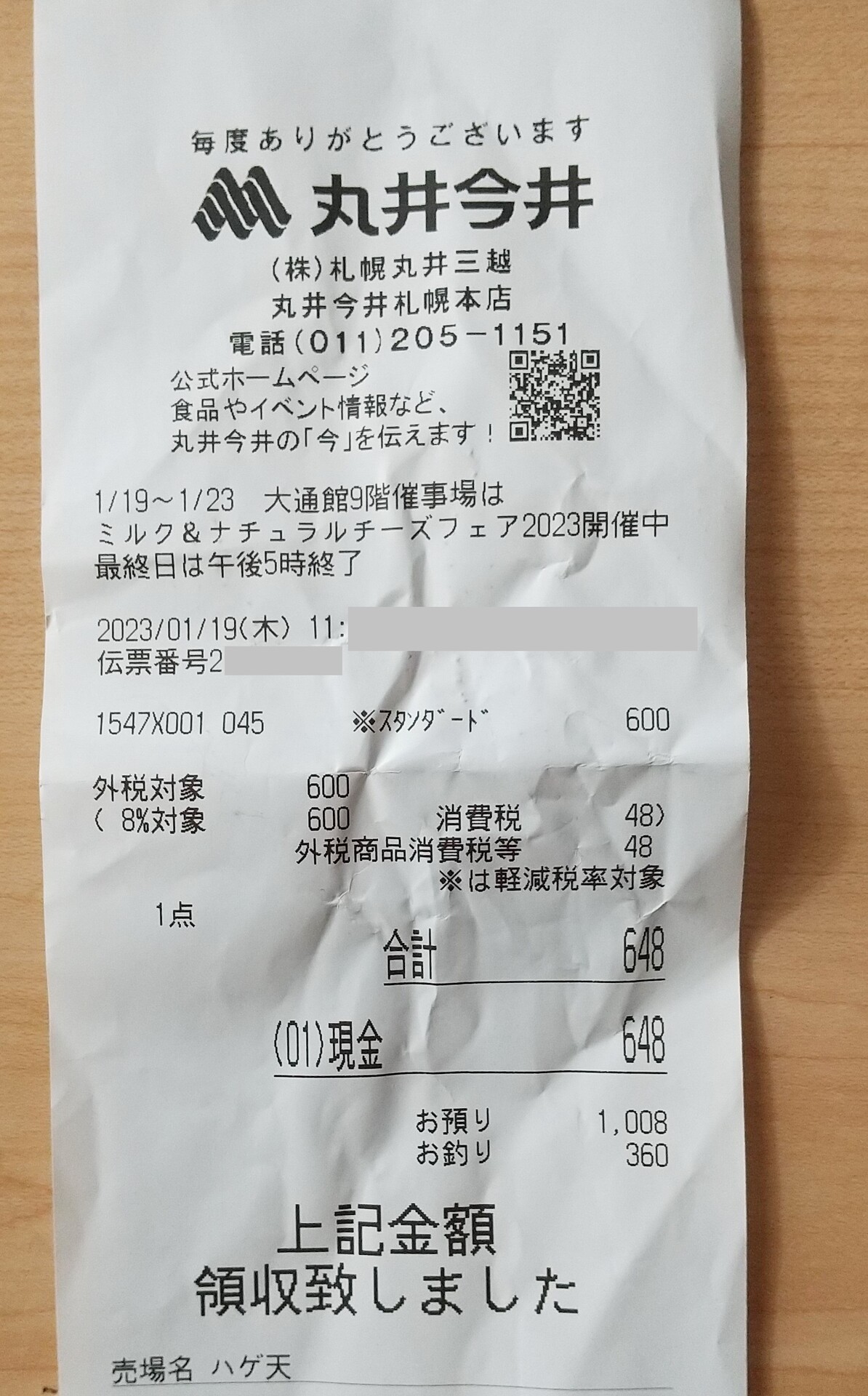 で、帰りに丸井(丸井今井)に寄って、地下で昼食用の弁当を買った。