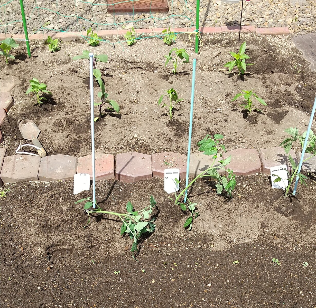 同じ野菜、あるいは同じ科の野菜が去年植えた場所と一緒にならないよう一応は考えて植えた。