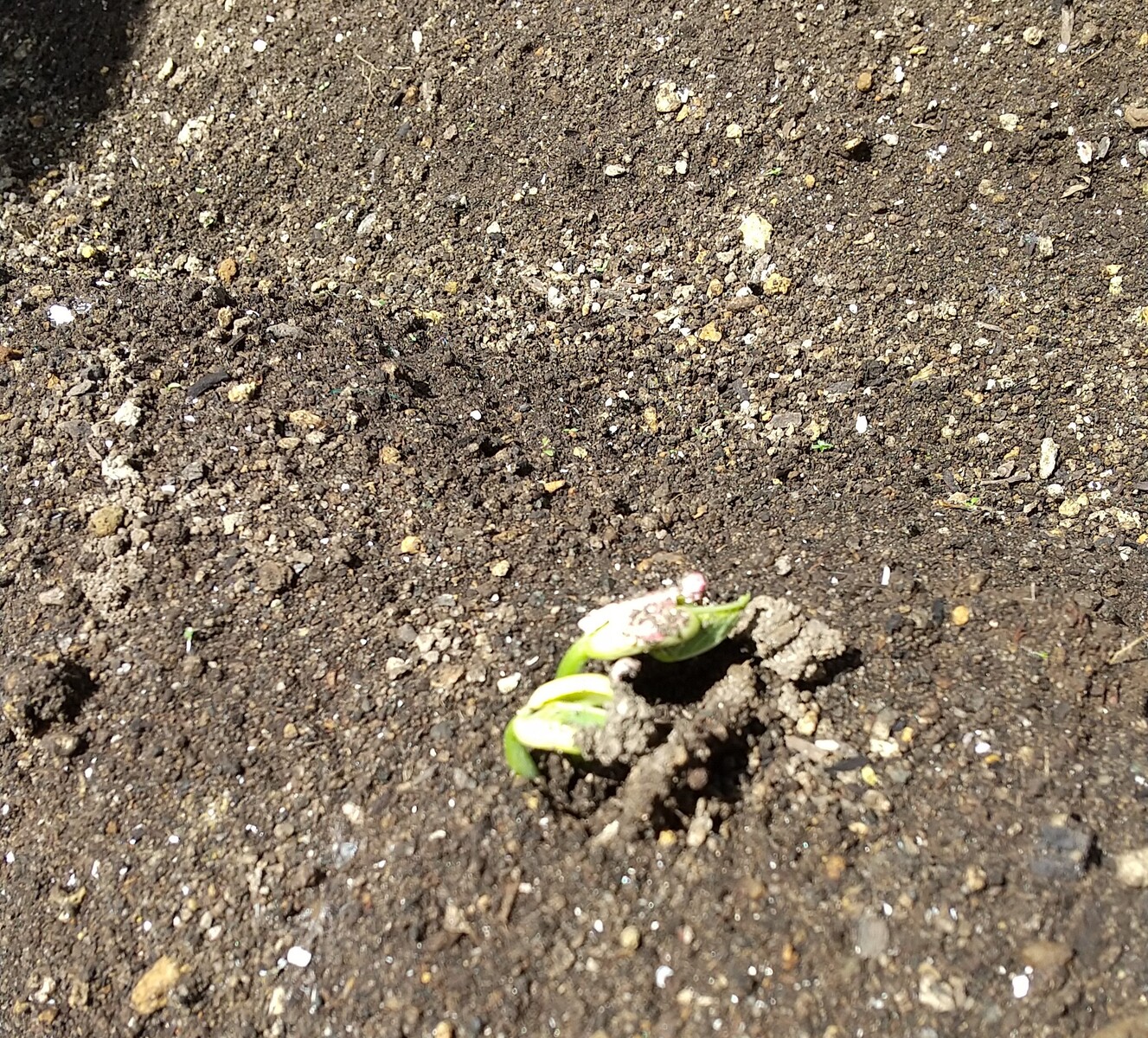 つるなしいんげんも発芽してきた。