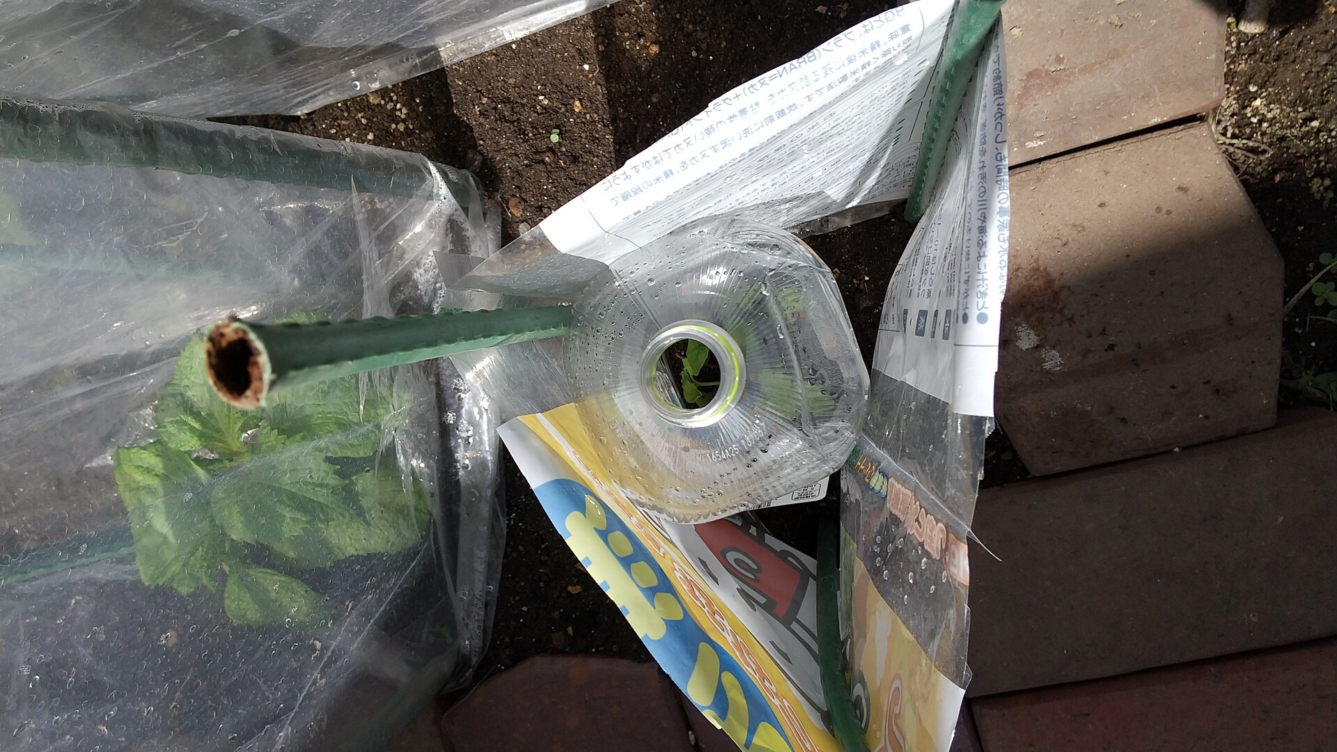 2リットルのペットボトルの底を切り取り、バジルにかぶせてみた。
