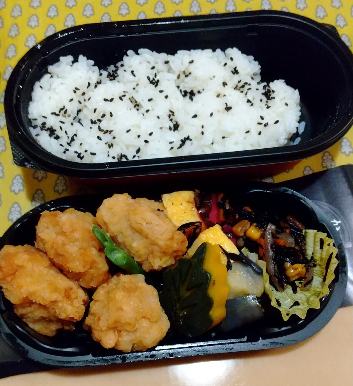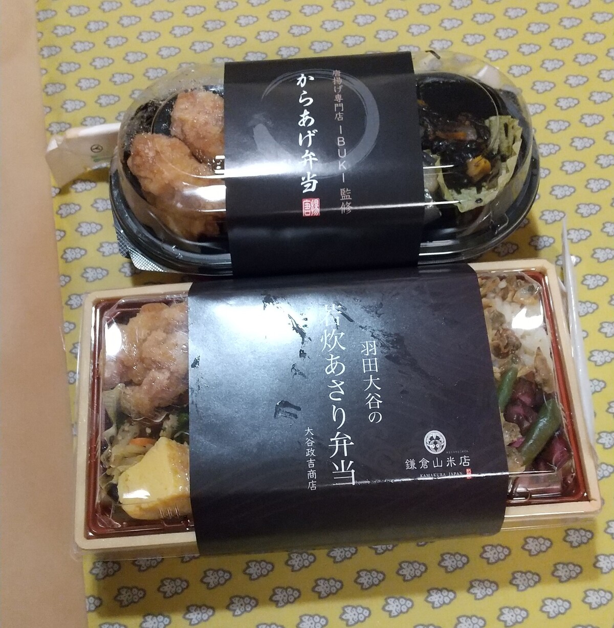 妻は「羽田大谷の若炊あさり弁当」、私は佐藤水産の石狩鮨、ではなく、「IBUKI 監修のからあげ弁当」。