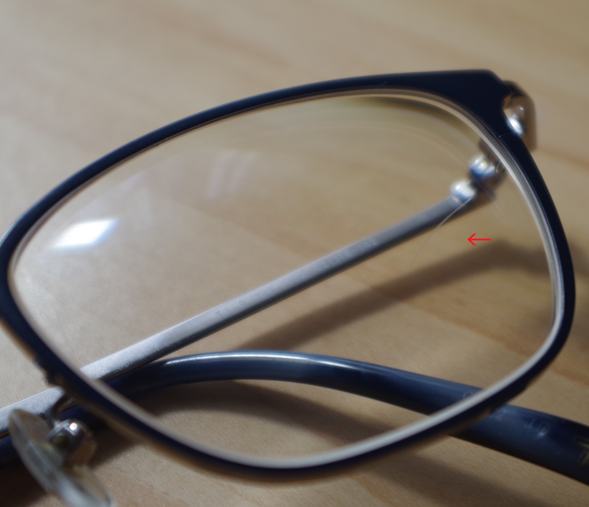 朝、起きてメガネをかけようとしたら、レンズに傷がついていた。