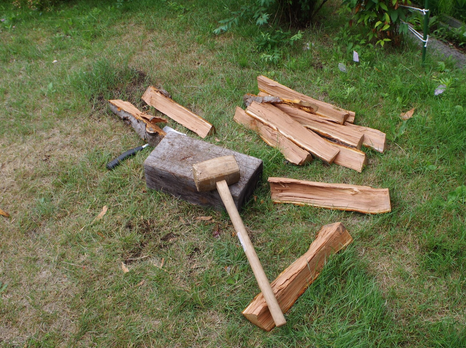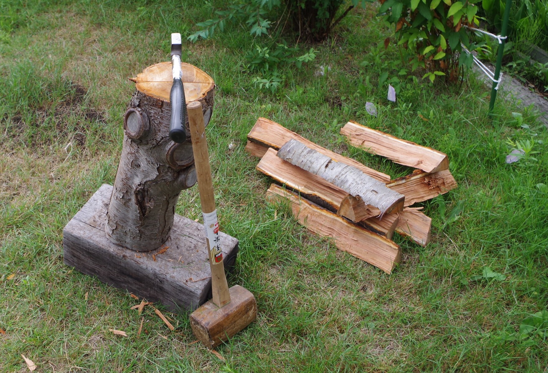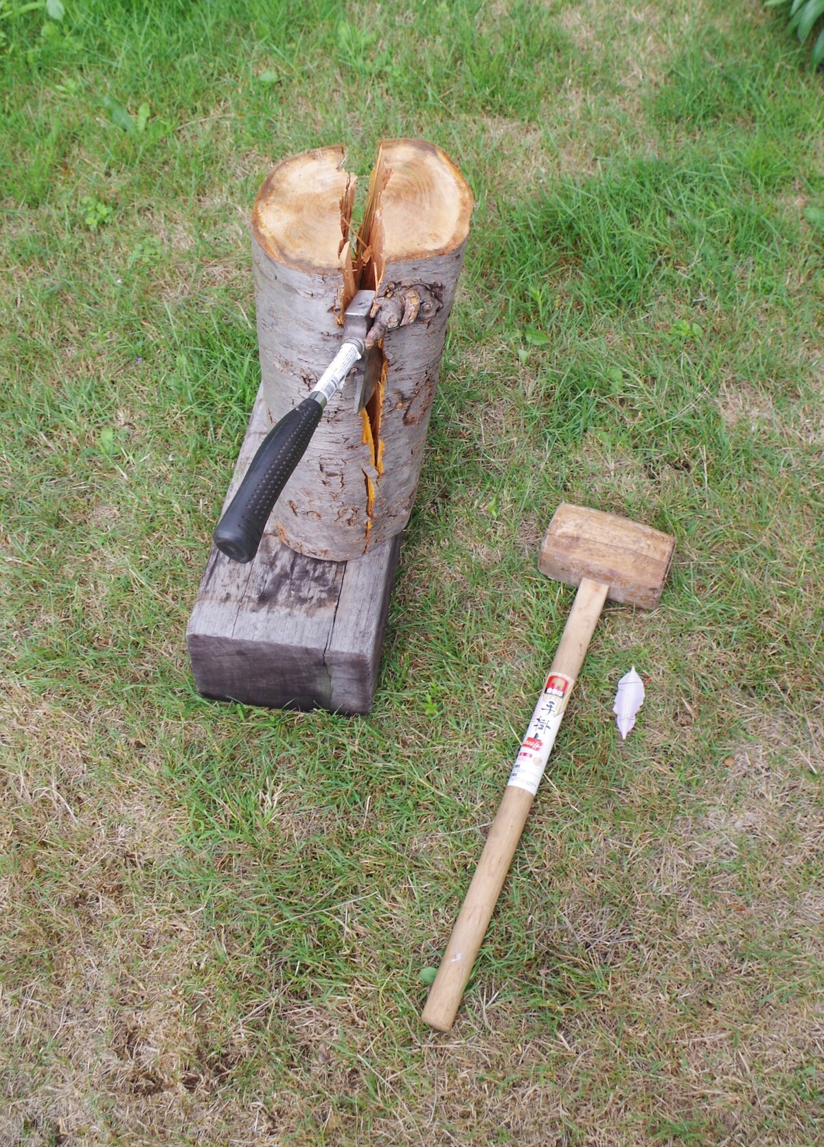 ということで、斧を楔 として使い、それを木槌で打つことにした。